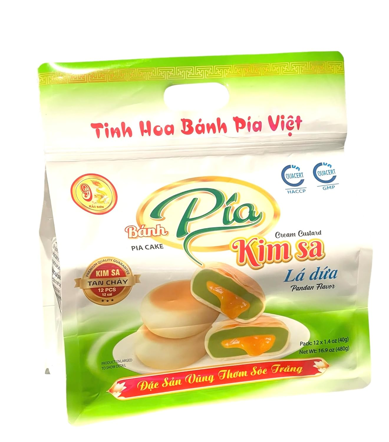 1 Pack - Mini Pandan Pia Cake - Banh Pia Kim Sa La Dua - 12 Cakes per Bag - Product of Vietnam