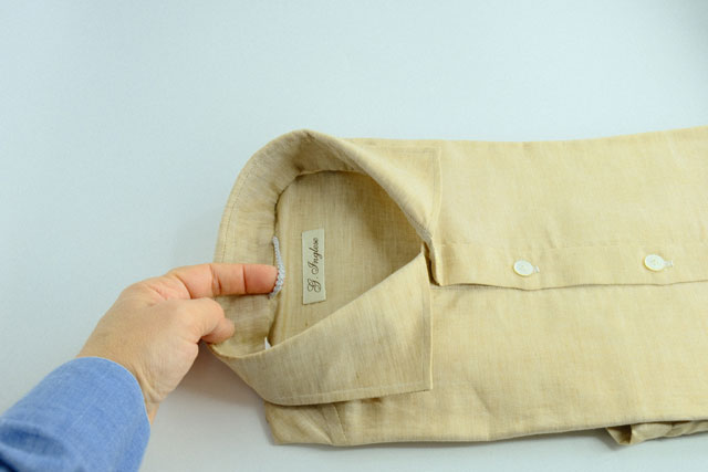 Each of our garments is made with great care, from the cut of the shirt and the fabric of the collar done by hand, to the preparation before sewing it, then moving on to hand-stitching, embroidery of the buttonholes followed by hand.  Cut strictly with scissors and assembled with simply linear machines.  This dexterity favors softness in the seams, the sleeves inserted and sewn with the bust closed in which the softness is harmoniously dosed and distributed to give more uprightness.