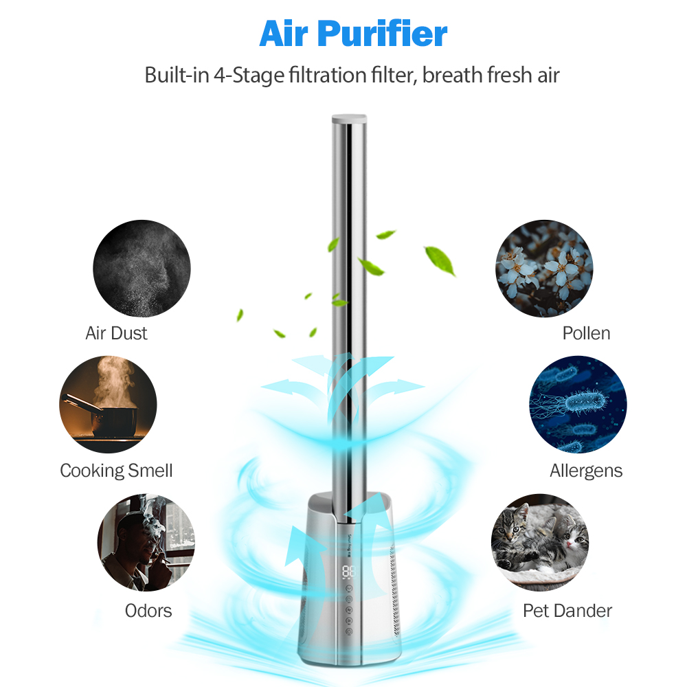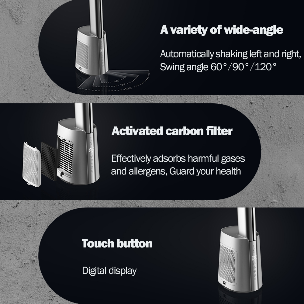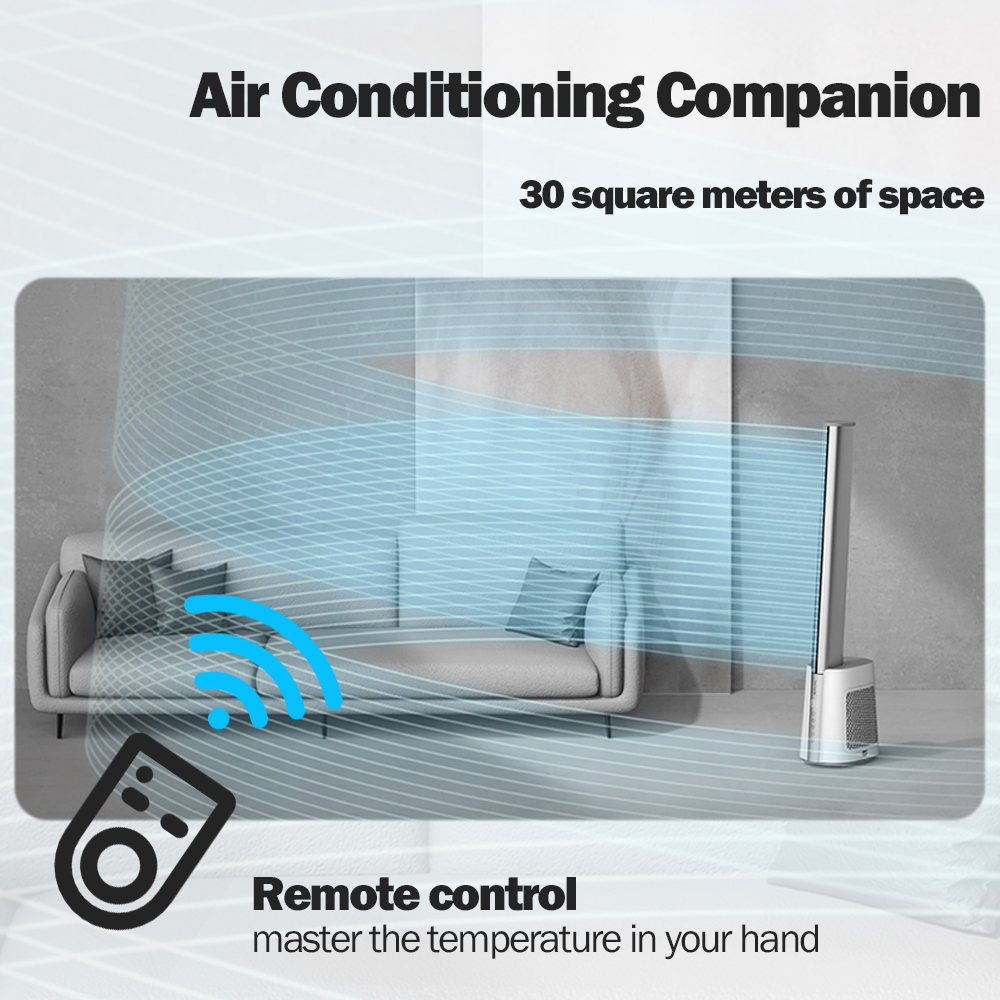 ● 10m Infinite remote controller + 8 wind speed + 8H timer ●Bladeless air outlet,70CM super long air-duct;