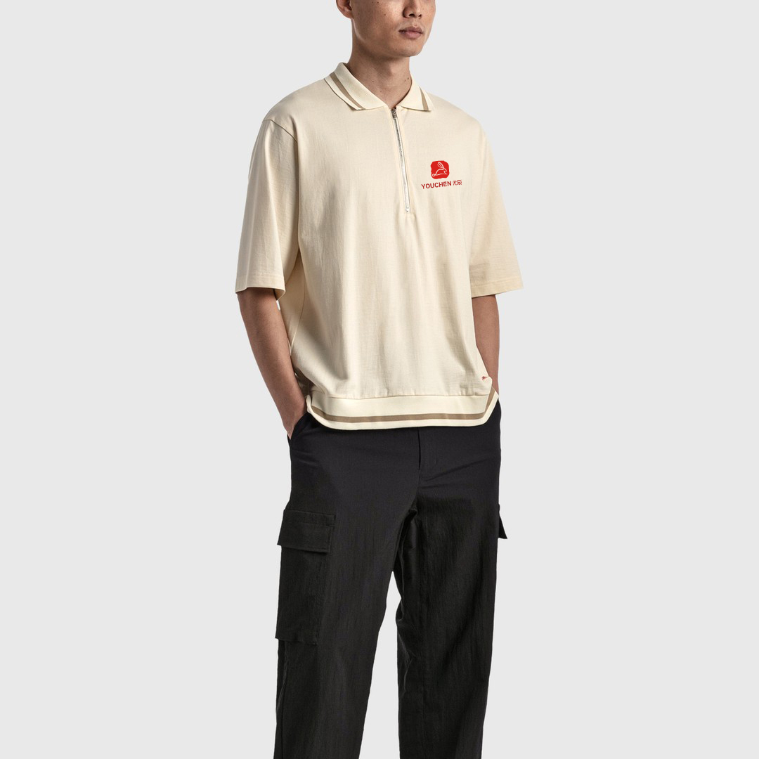 OEM High Quality Streetwear Custom Men's Quarter Zip Polo Shirt Short Sleeve Embroidered Logo Drop Shoulder Golf Polo T-shirt
