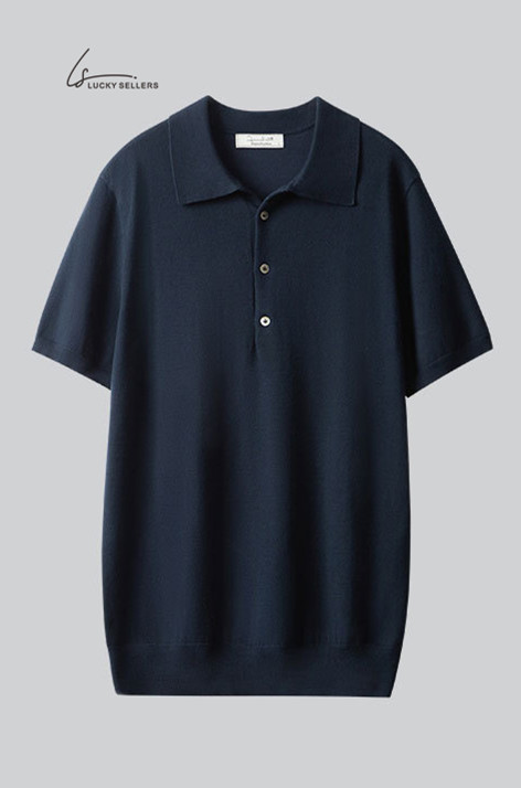 100% Cotton Thin Short Sleeve Button Lapel Polo Shirt Knitted Business Casual Slim Fit Men's T-shirt