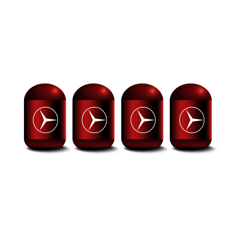 Product Information: Fit for Mercedes Benz Material: Metal Size: 16x10.5mm Color: Red Quantity: 4 Pcs/Set Features: *Made of high quality alloy. *Rubber seal ring inside to reduce air leak and prevent dust and dirt getting into the valve. *Best decoration and protection for your car.
