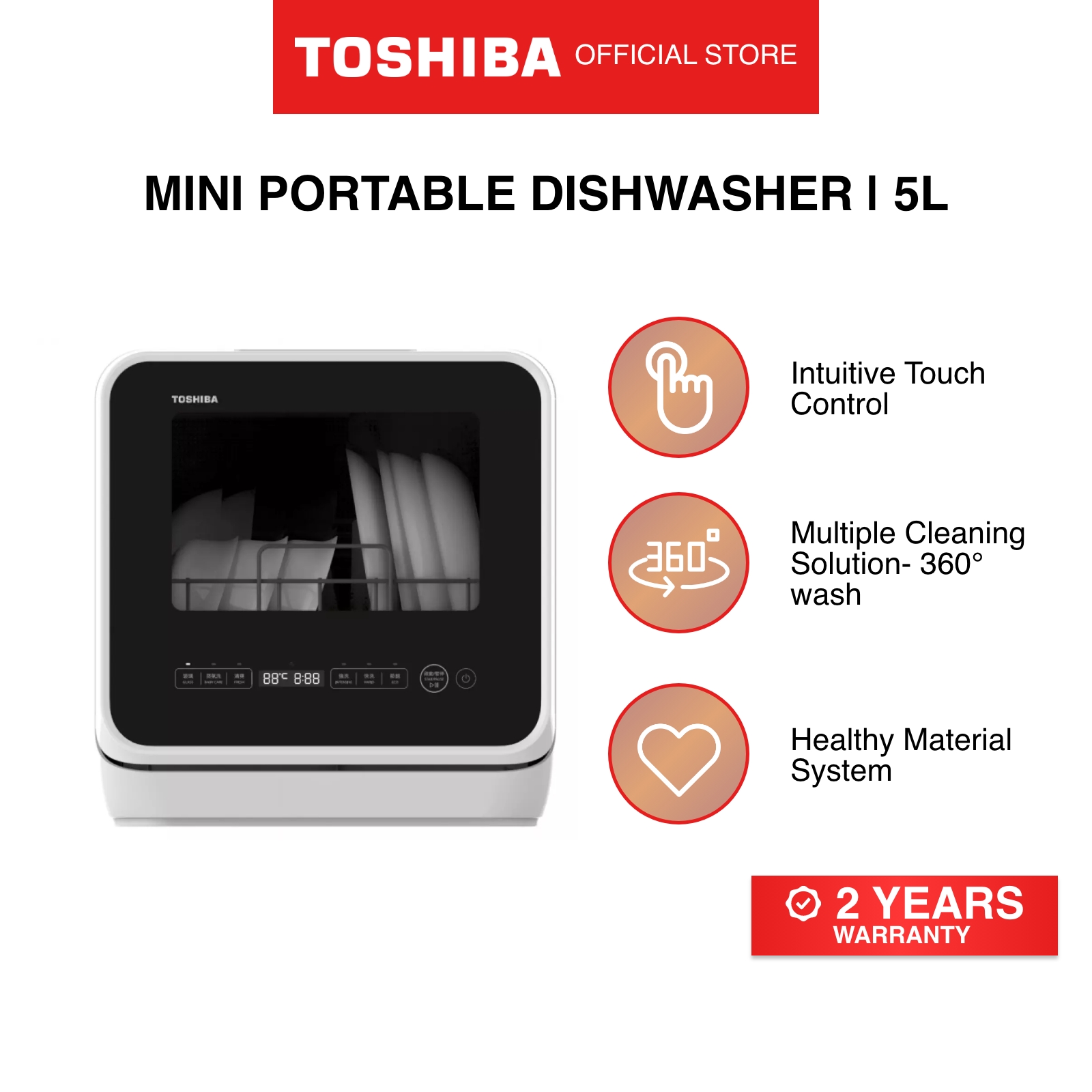 Toshiba DWS-22ASG(K) Black Multiple Purposes Portable Dishwasher, 5L