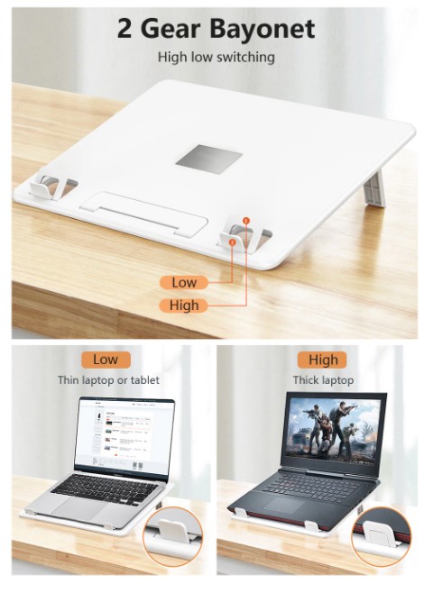 Adjustable Desk For Working And Reading✔️Ergonomic elevation angle protects the user's cervical spine and eye health.✔️Silicones provide the best protection for your equipment,✔️Compatible for 7-15 inch laptop.✔️Suitable for different scenariosThe best choice for daily work and business trip. Features• User-friendly concept, easily adjust to comfortable angle• Suitable for different scenarios, portable for daily work and business trip• Silicone pad for providing the best protection for device• Stable and durable Parameter • Color:White • Material:Plastic+Silicone • Applicable models:7-15 inch laptop