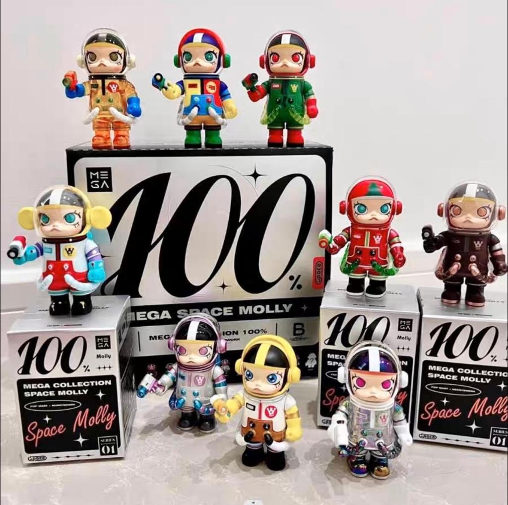 【SG Supplier】*Ready Stock* Mega Collection 100% Space Molly 9 + 1 (Hidden Character) Anniversary Blind Box Bubble Mart + 10 Transparent Casing
