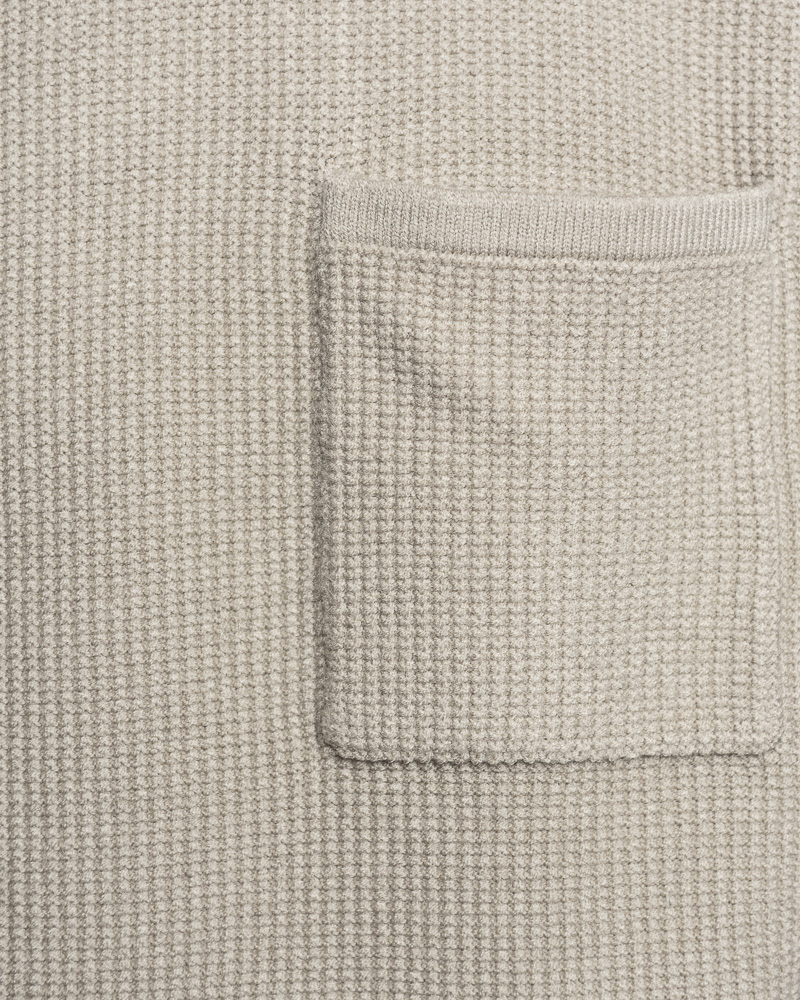 Regular Knitted Round Neck Vest with Ribbed Texture Details and Hem. Comes with Chest Pocket at the front. Made of cotton.