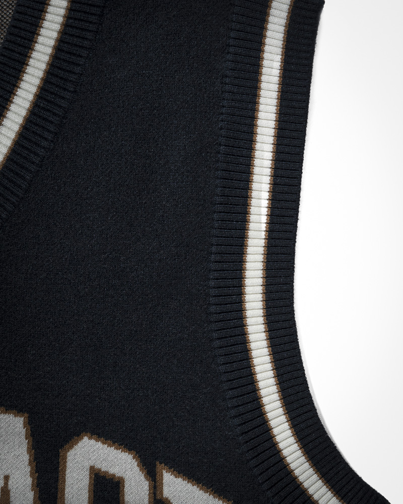 Yishion Men Knitted Varsity Vest With Contrasting Colour Hems and 'COURAGE' Slogan (Dk. Blue)