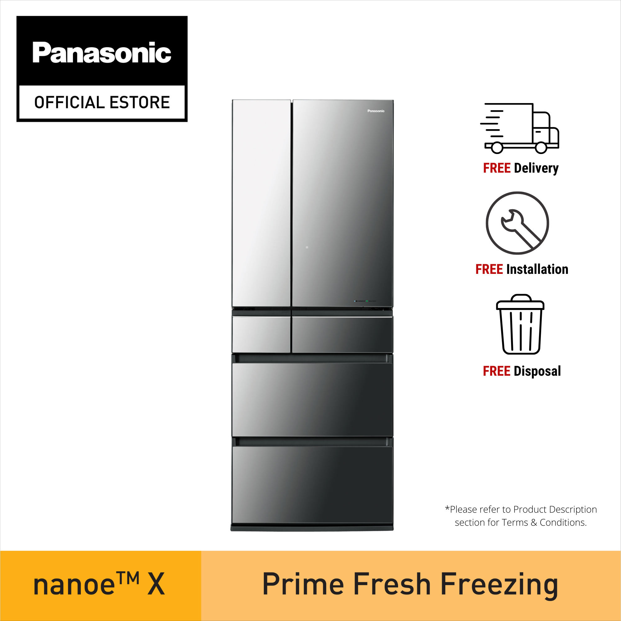 [Bulky] Panasonic NR-F603GT-X6 Premium MIJ 6-Door Refrigerator with Refined Full-flat Glass Design