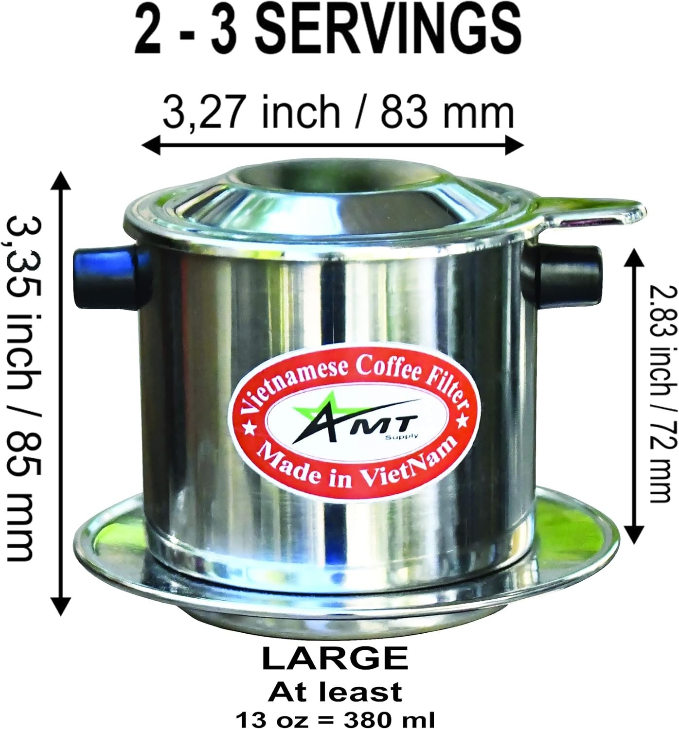 AMT 13 oz Coffee Maker - Vietnamese Phin Filter with Cork, 2-3 Servings, Screw Down Coffee Dripper for Home Office
