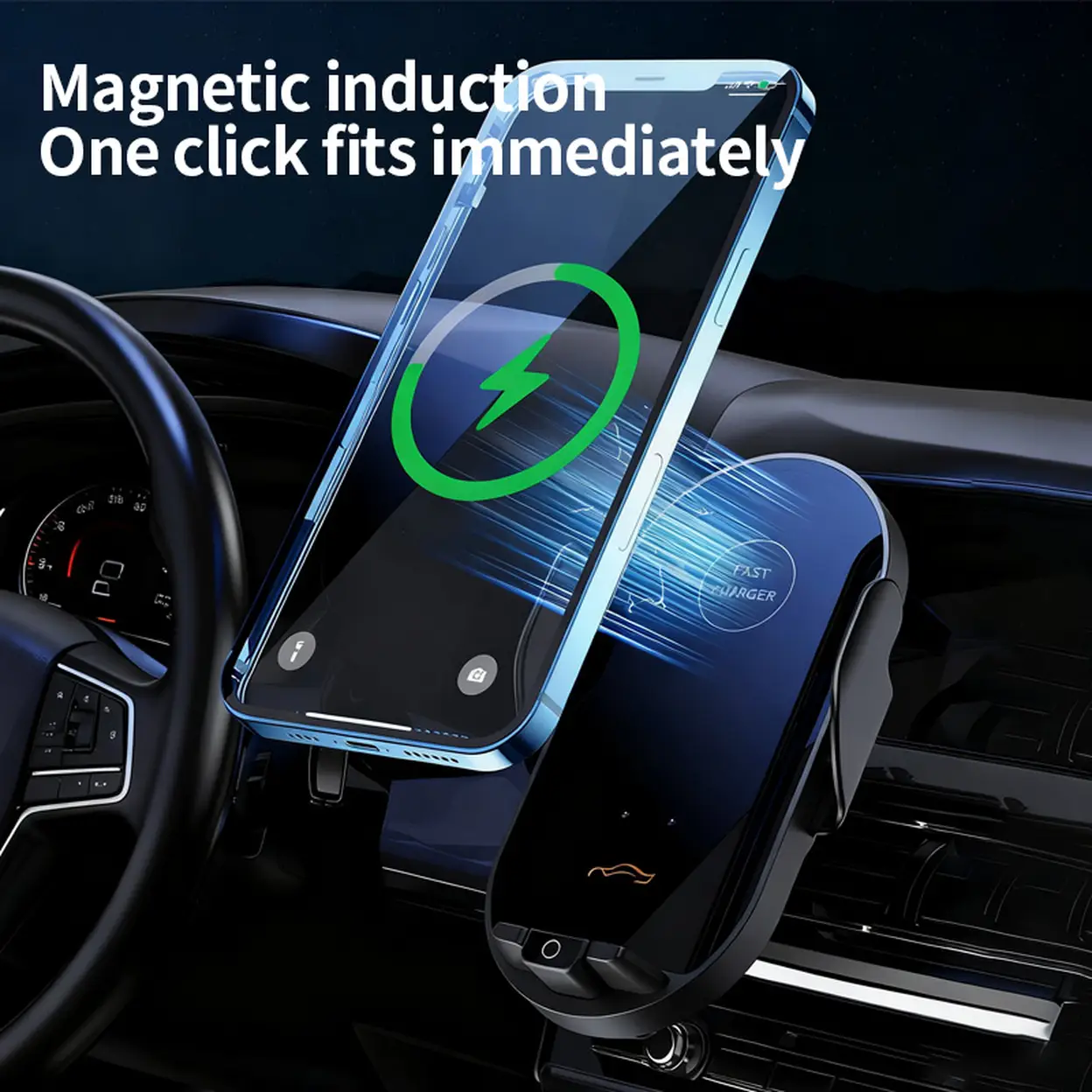 ATSHARK Wireless Car Charger, 15W Fast Car Wireless Charger, Magnetic Phone Holder Vent Mount with Automatic Sensor, Compatible with iOS & Android, G16,Black