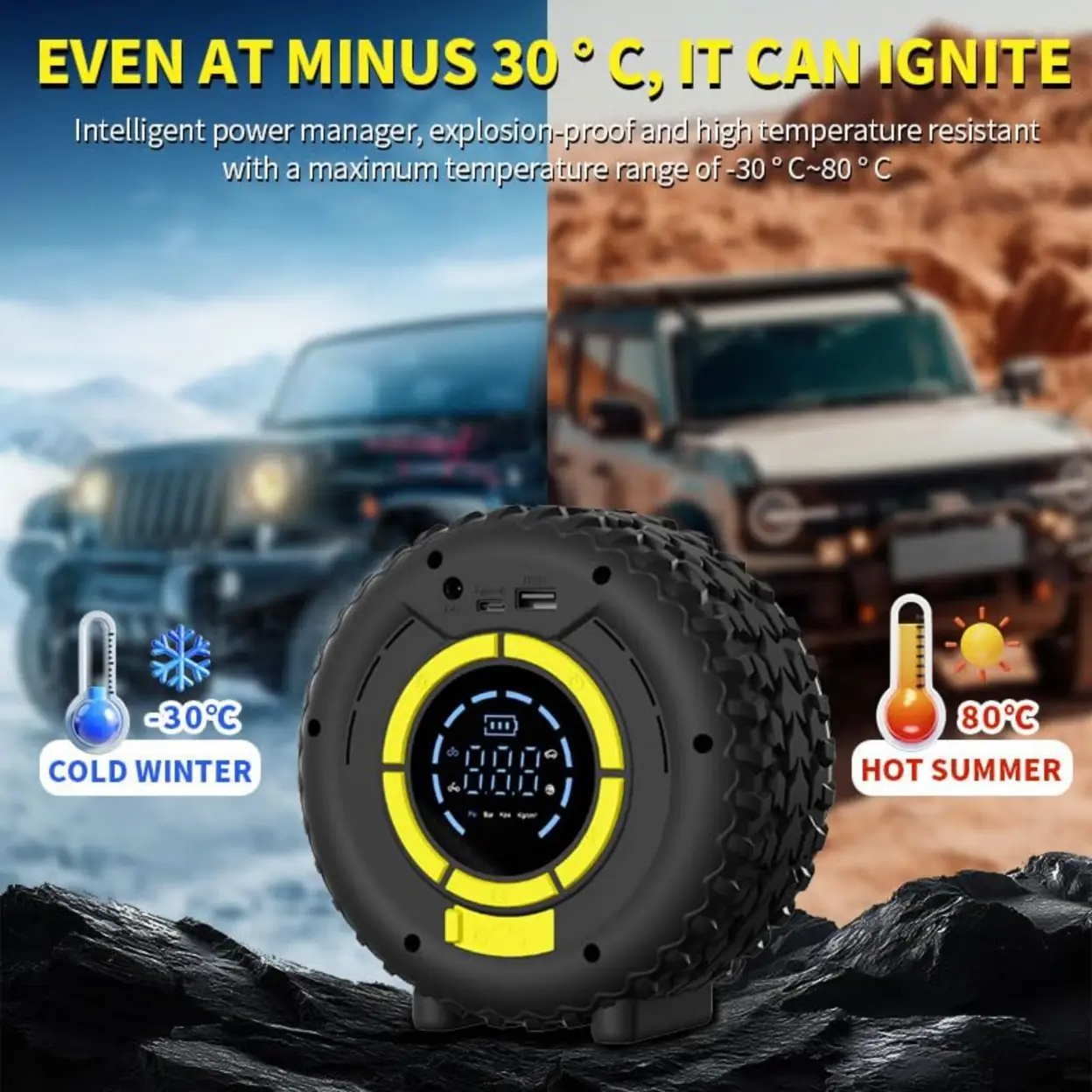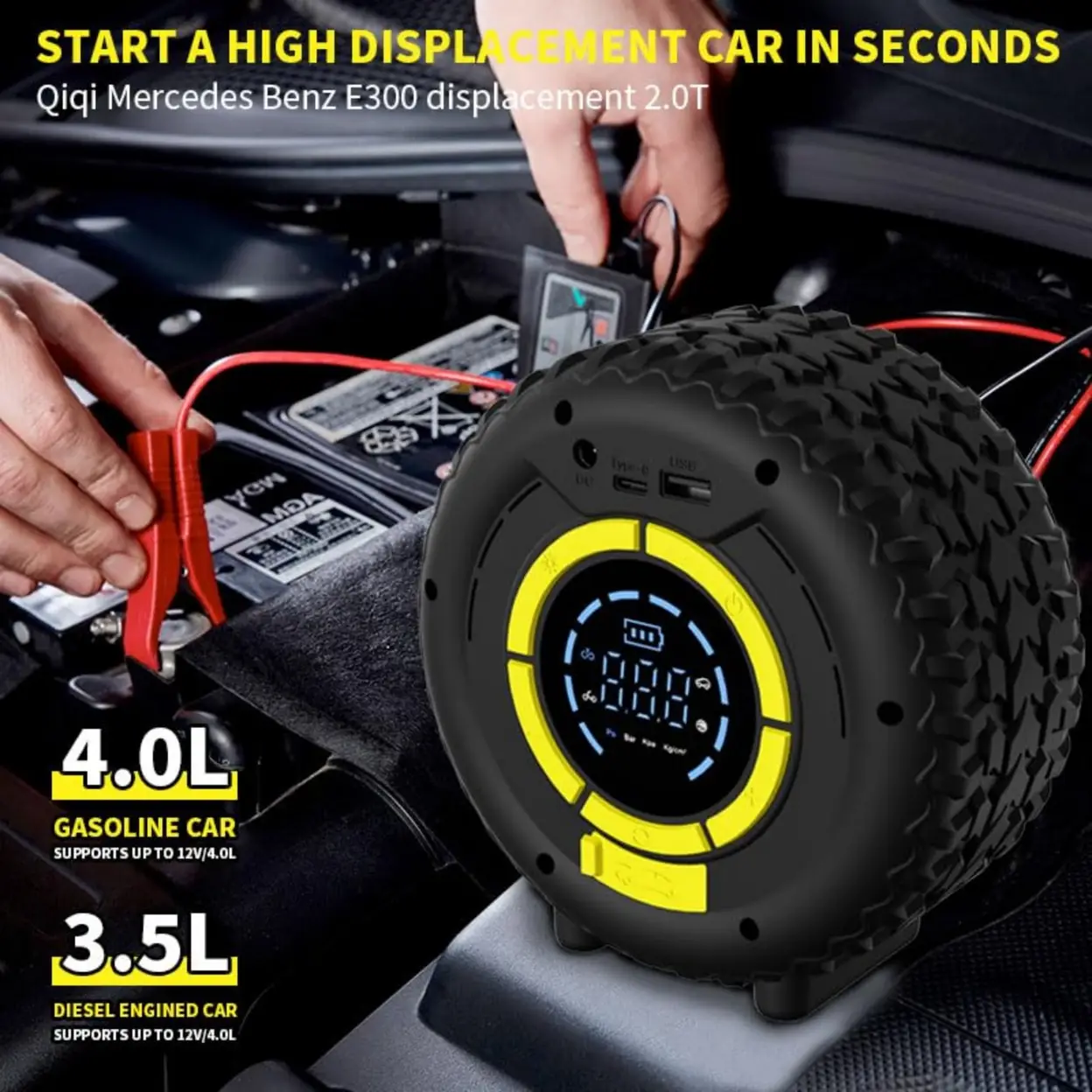 Car Battery Booster with Inflator, COCCKO 150PSI Car Starter, 120W Booster Compressor, Booster Inflator LCD Screen, LED Lighting & SOS Mode