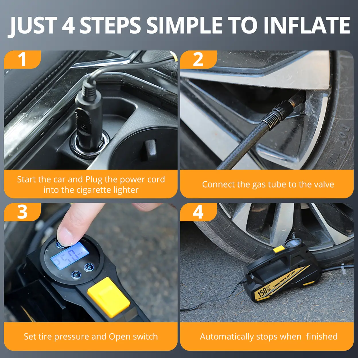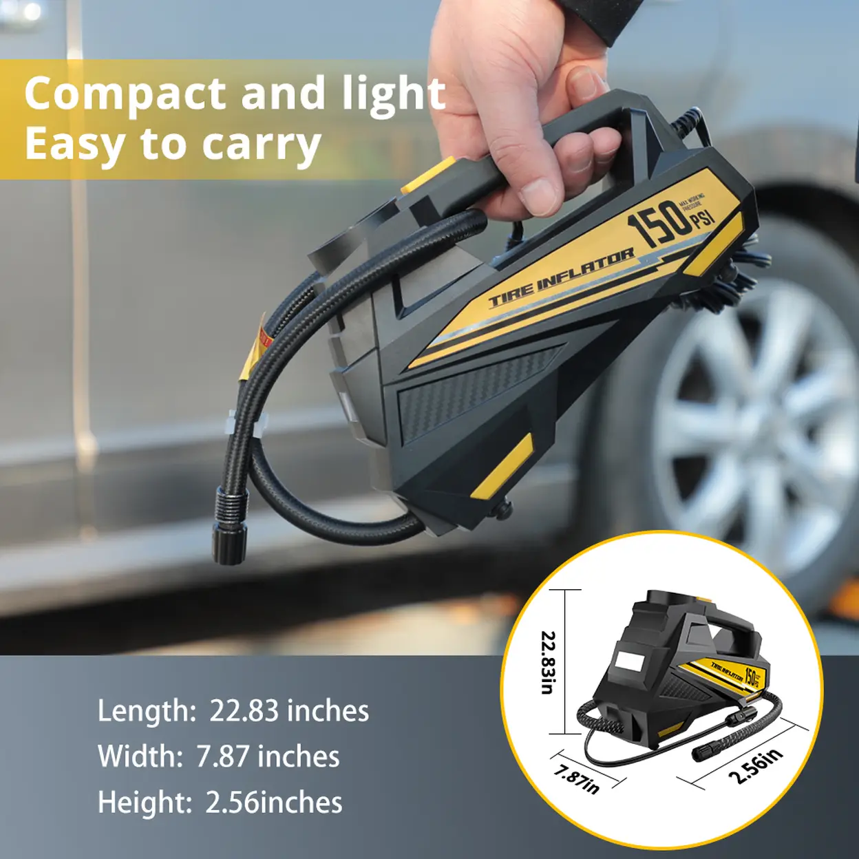CARSUN Upgraded 12V 150PSI Corded Electric Tire Inflator: High-Performance Portable Air Compressor for Car, Motorcycle, Bike & Ball