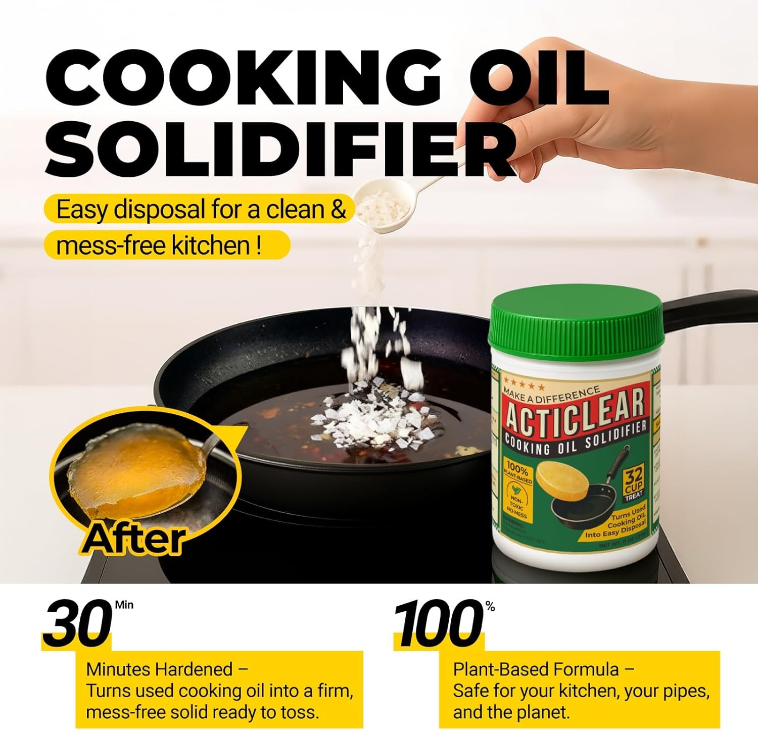 Cooking Oil Solidifier - 11oz (32 Cups) Algae-Based Grease Hardener for Easy Disposal, Turns Used Cooking Oils to Solid Waste, Kitchen Fry Oil Solution (2.2 Gallons)