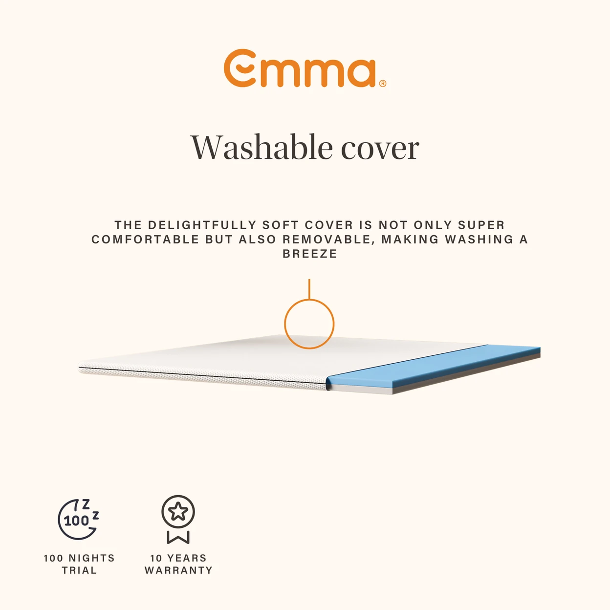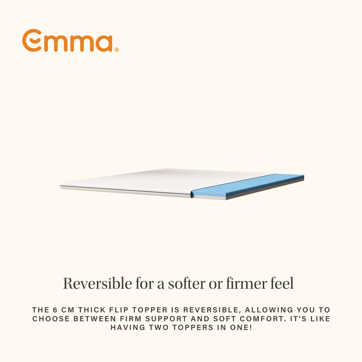 The Emma Original Mattress Topper is crafted from high-quality foam layers, combining soft Airgocell® foam on one side with firmer HRX foam on the other. This dual-foam construction allows you to flip the topper and select either a soft, pressure-relieving surface or a more supportive, resilient feel. The topper is encased in an UltraDry textile cover that is breathable, moisture-absorbing and fully removable for washing. All materials are manufactured under strict European quality and safety standards to ensure durable, reliable performance.