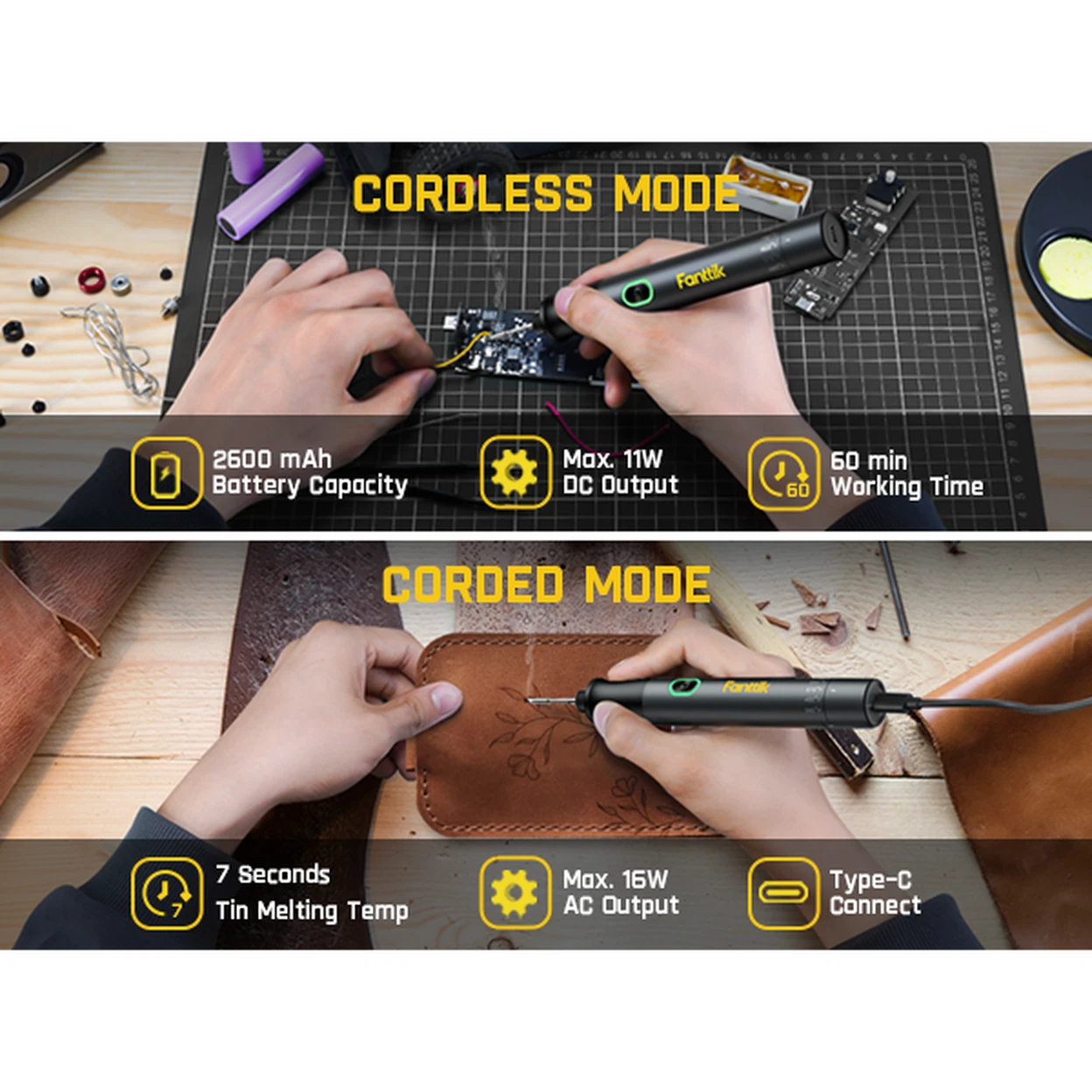 Fanttik T1 Max Soldering Iron Kit, Cordless Soldering Iron, 7 Seconds Fast Heating(390°F-840℉), Auto Sleep, 4 Precision Soldering Tips(C210), 360° Swivel Stand, Soldering Iron for Precision Repair