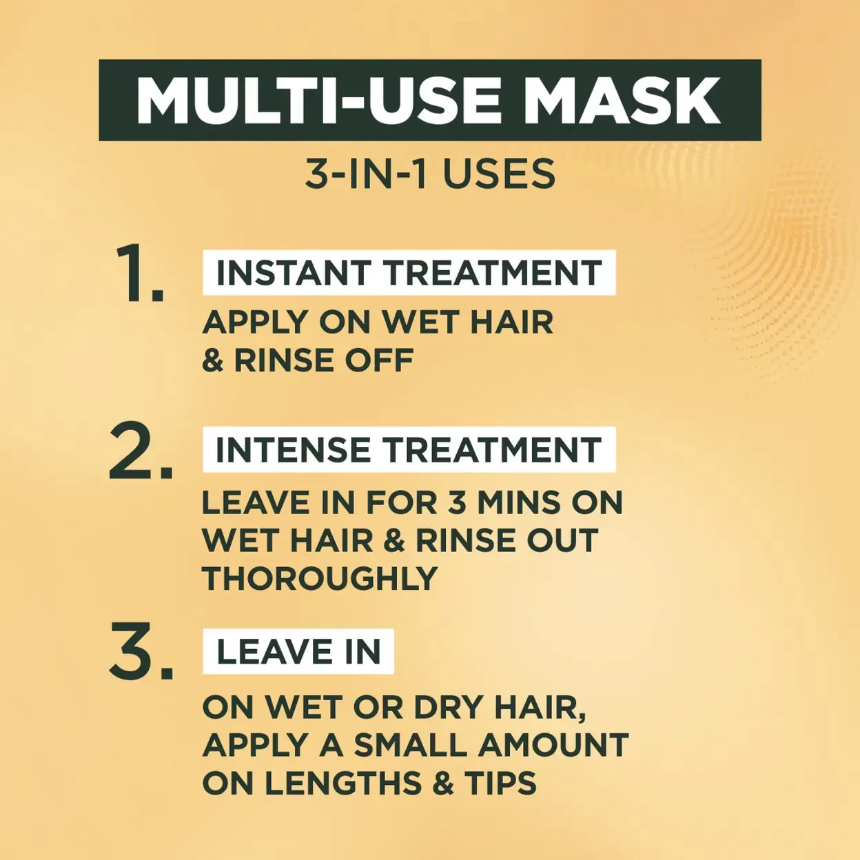 Apply on wet hair, leave for 3 minutes, and rinse out thoroughly. For leave-in treatment, apply a small amount on wet or dry hair, focusing on lengths and tips.