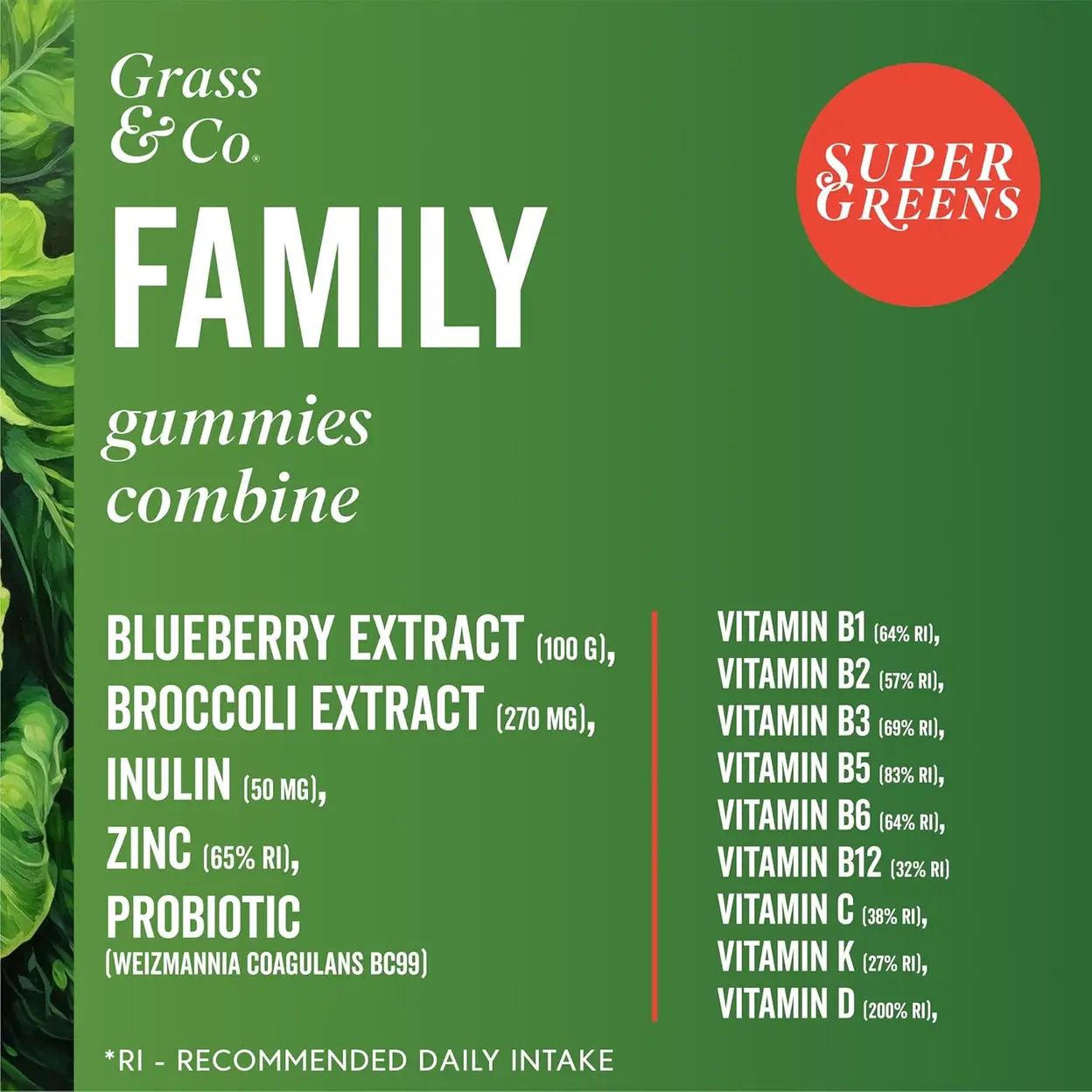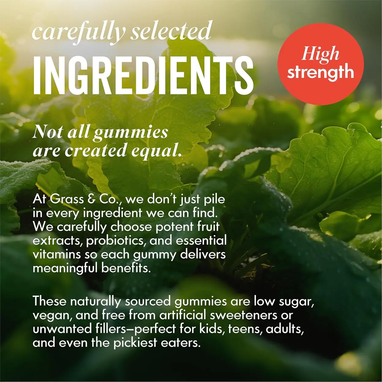 Grass & Co. Family Super Greens Multivitamin Daily Wellness Support Gummies with Probiotics - 60 Gummies