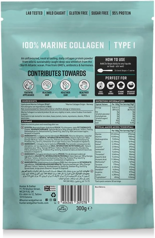 HUNTER & GATHER 100% Wild Caught Marine Collagen Beauty Support Powder - 300g