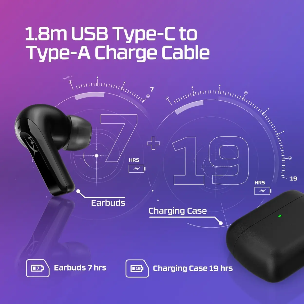 • Designed for gaming on the go, the portable charging case protects and powers the earbuds through long sessions.