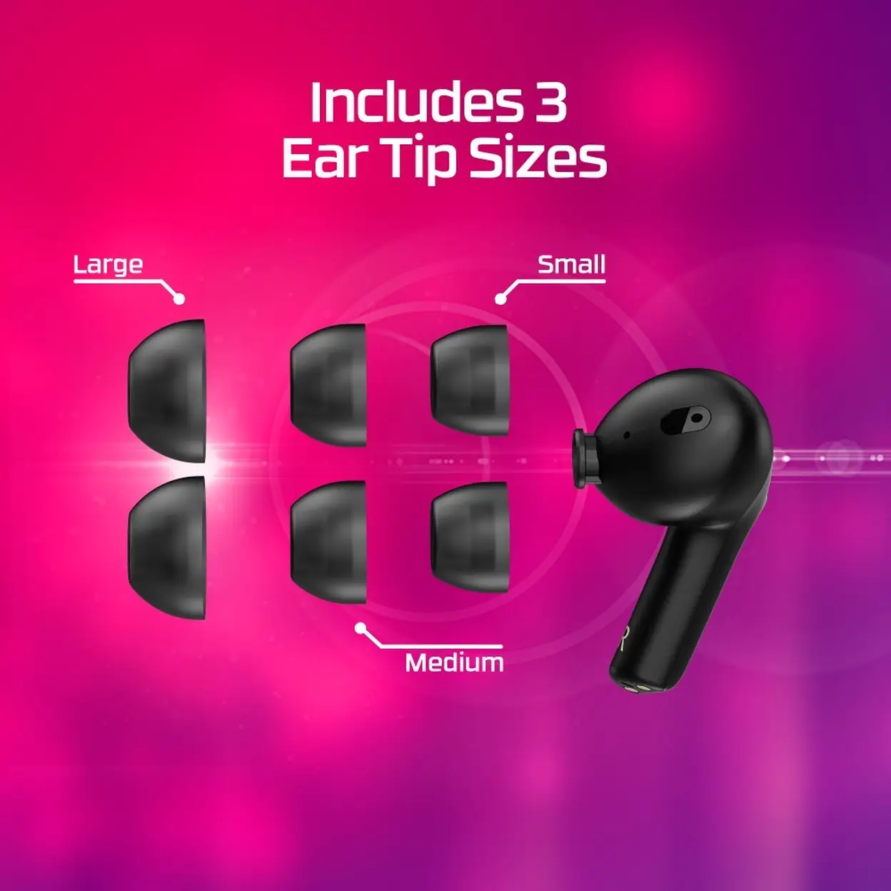 • A built-in microphone provides reliable voice quality for chats and calls, with multiple ear tip sizes ensuring a secure and comfortable fit.