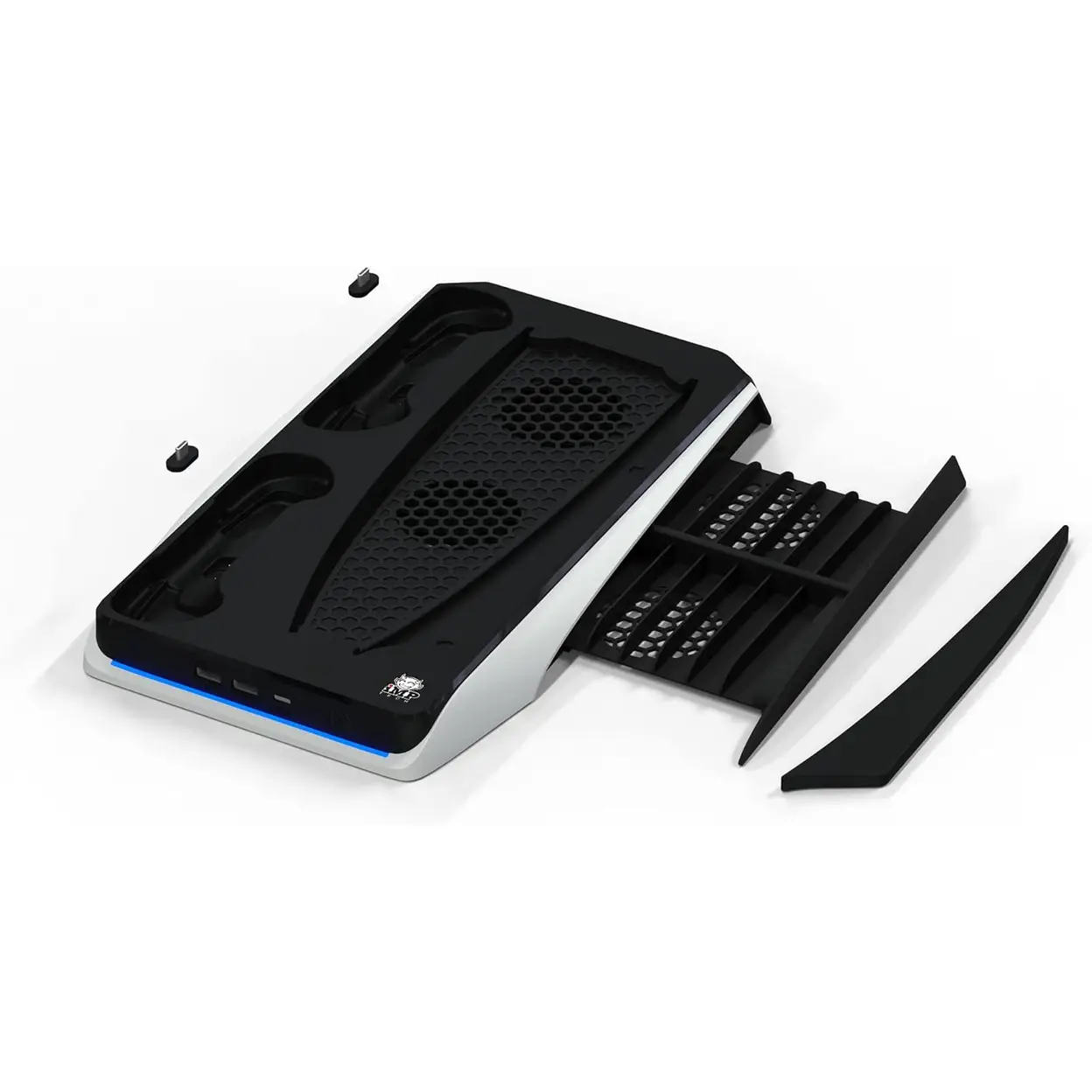 IMP Gaming DLX Twin Charging Tower – With Cooling Fan & Game Storage – Black/White (PS5)