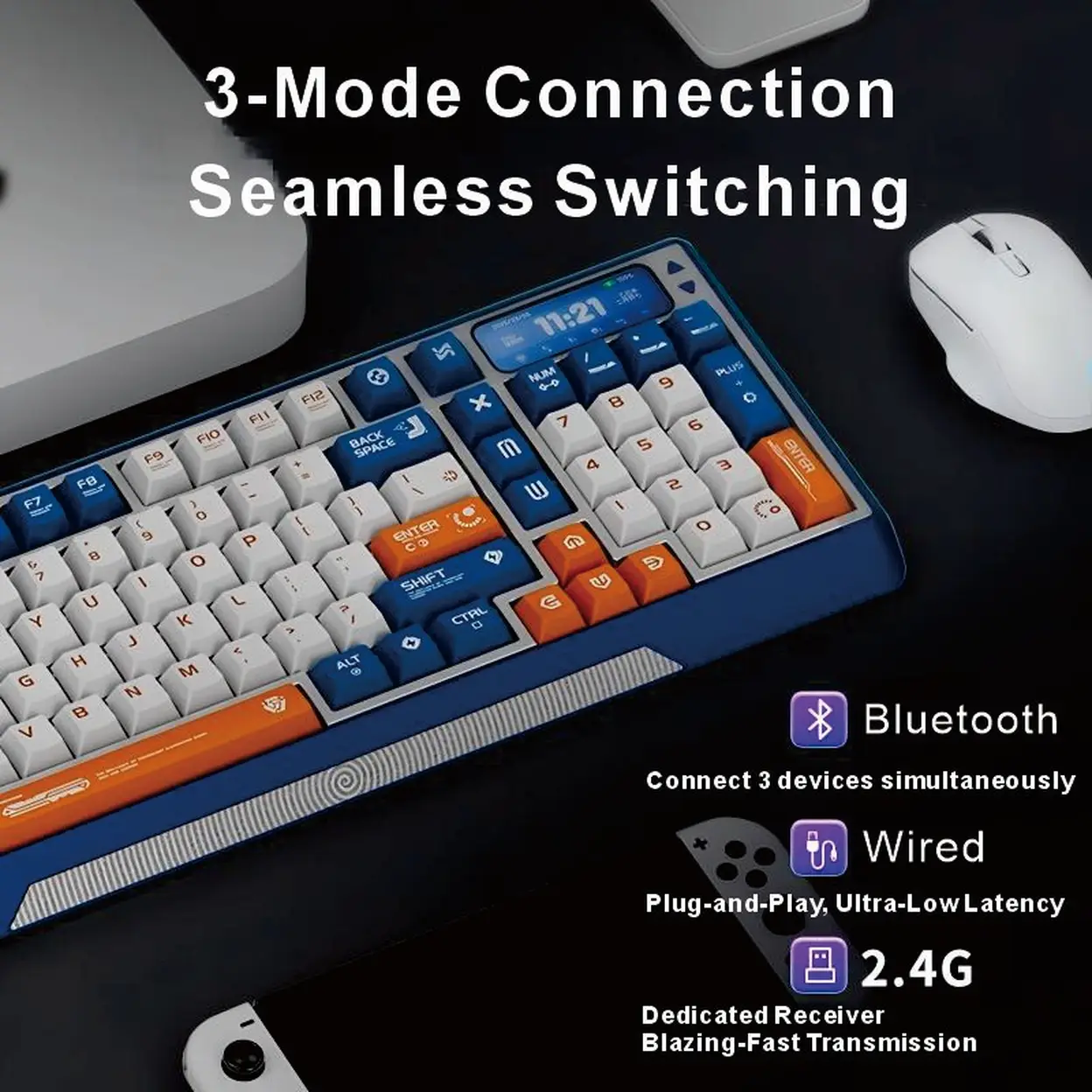 【Innovative Motorized Lift】Siukie CTRL100 CNC Aluminum Mechanical Keyboard, HMX Cream Taro HIFI Switches, Customized IPS Screen, Gasket Mount, Tri-Mode Wireless, 96% Layout, US QWERTY, Brown