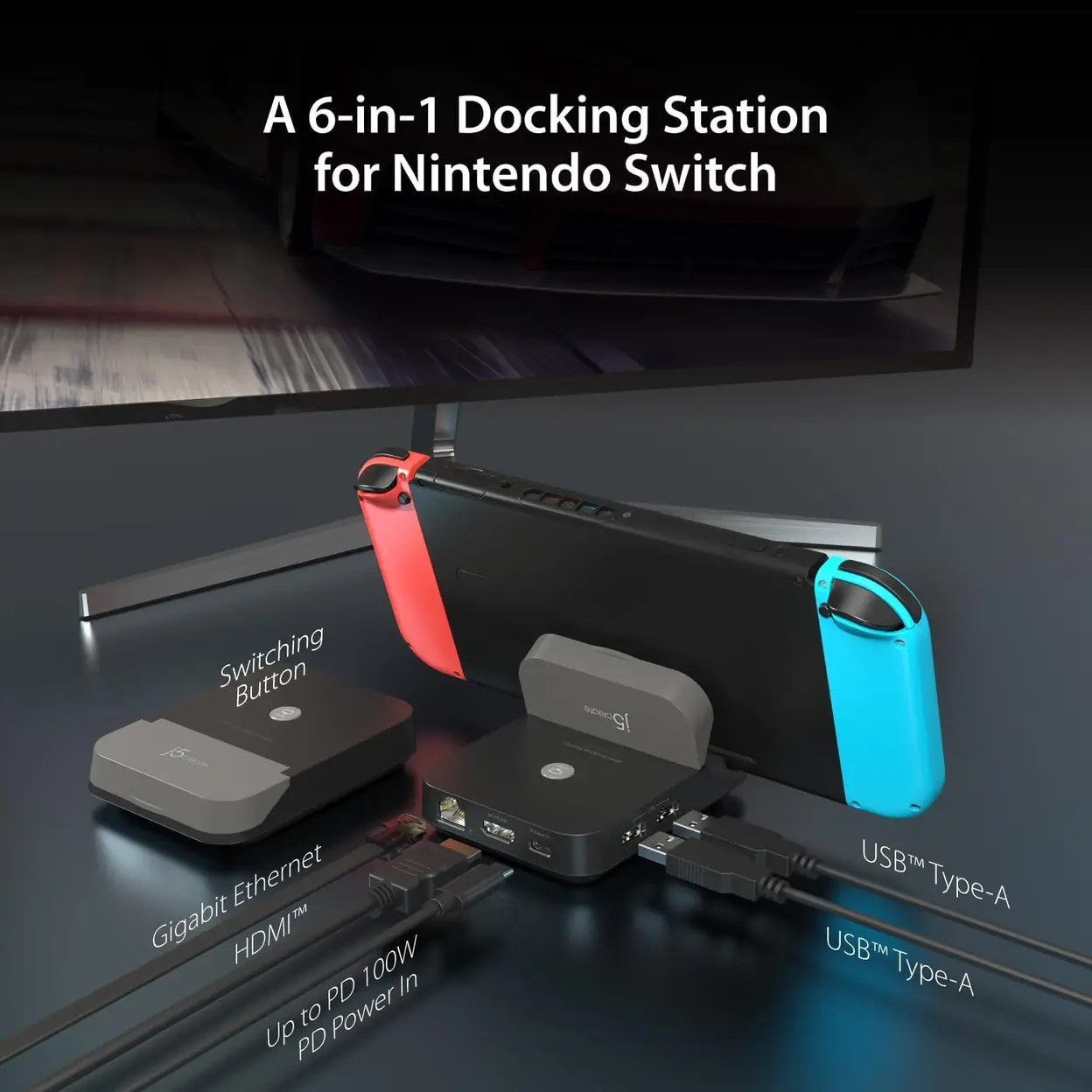 Add extra functionality to your Nintendo Switch with the j5create JCD620 Mini Docking Station, a compact yet powerful accessory designed to elevate your gaming experience without the bulk of the standard Switch dock. Measuring significantly smaller, it saves valuable space while delivering all the essential connectivity needed for home or on-the-go gaming setups.This mini dock lets you seamlessly project your Nintendo Switch screen to any HDTV via its HDMI output, transforming handheld gameplay into immersive big-screen entertainment for solo sessions or multiplayer fun. It also features Gigabit Ethernet for stable, lag-free networking—ideal for online gaming where a reliable connection is key—eliminating the inconsistencies of Wi-Fi.Equipped with USB-C® Power Delivery, it charges your Switch while in use, ensuring uninterrupted gameplay. Compact and portable, it fits easily into travel bags, making it perfect for gaming on trips. Combining essential functionality, space-saving design, and reliable performance, the JCD620 is the ideal companion for Nintendo Switch users seeking flexibility without compromise.