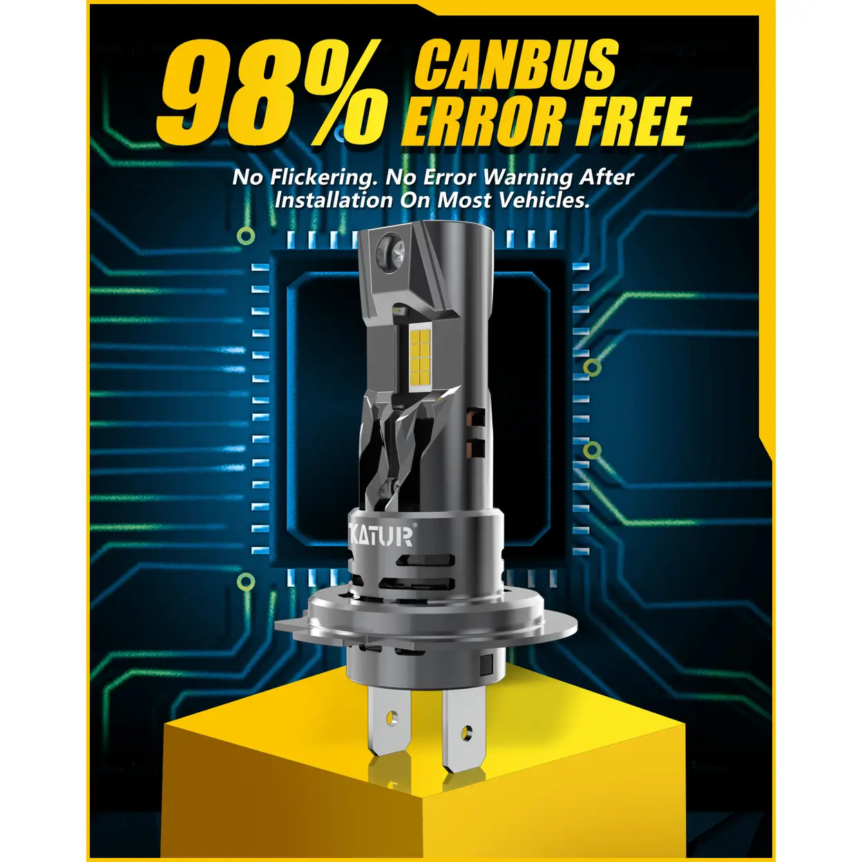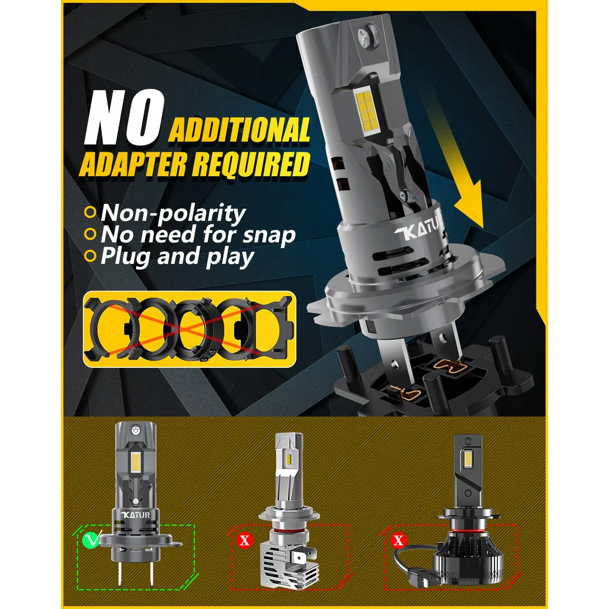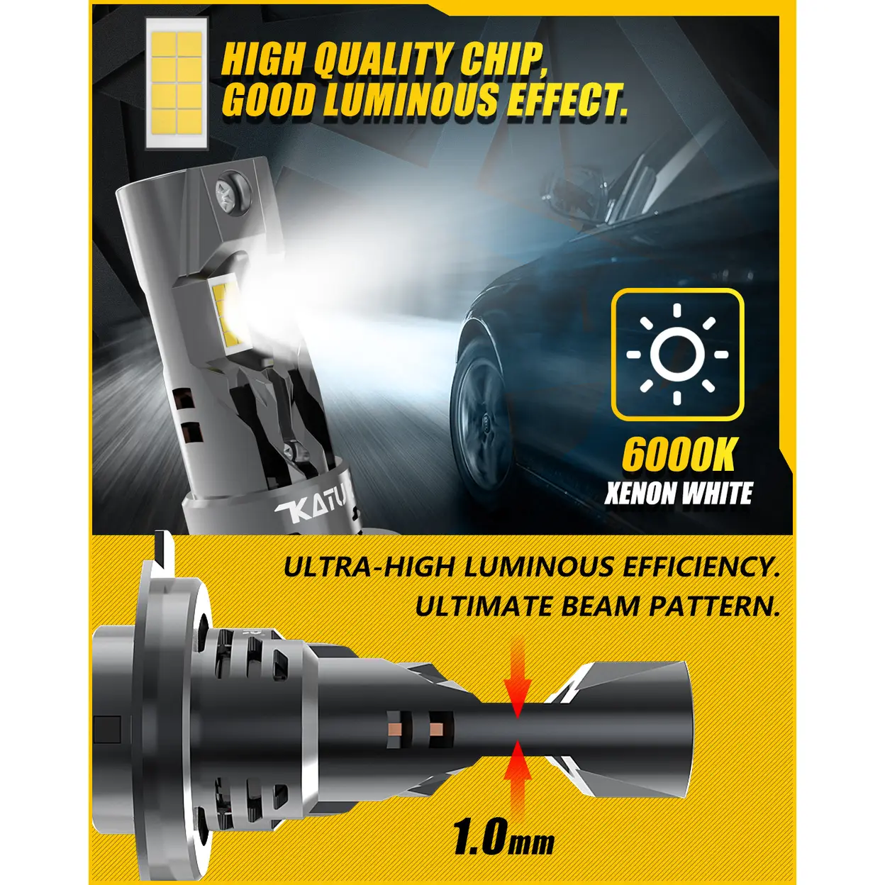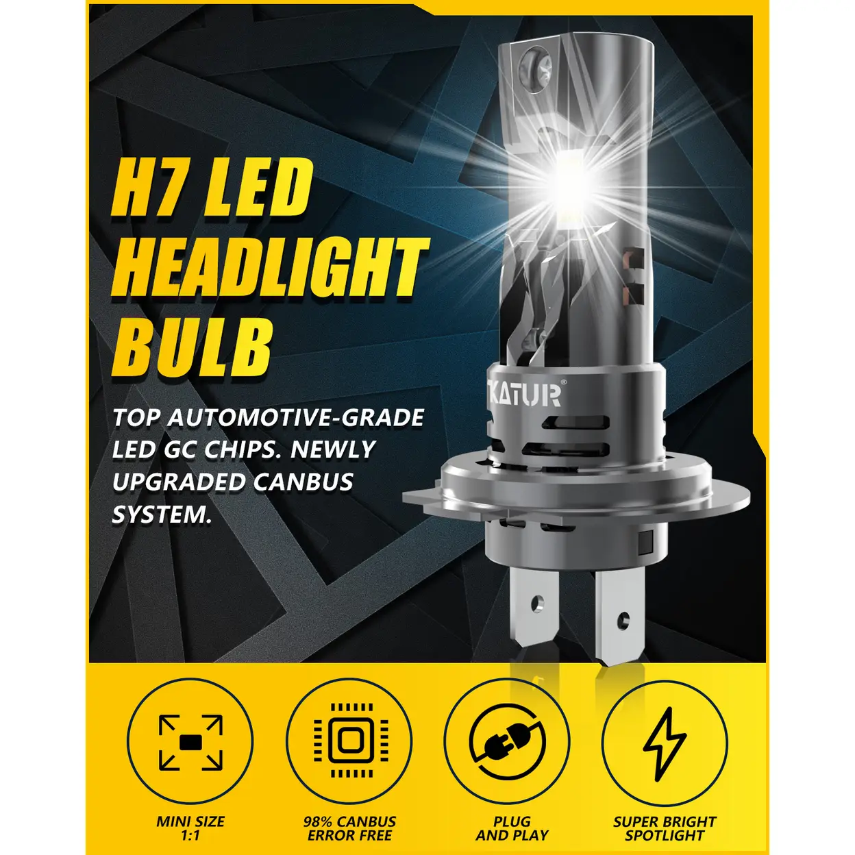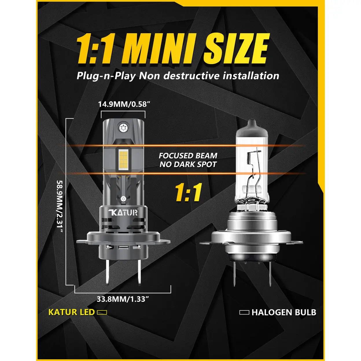 KATUR H7 LED Headlight Bulbs, 100W 30000LM 6000K Xenon White H7 Headlight Bulb 1:1 Mini Size Plug and Play H7 LED Bulb, Pack of 2