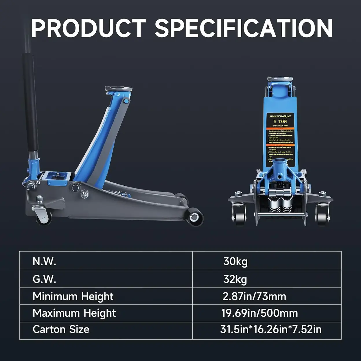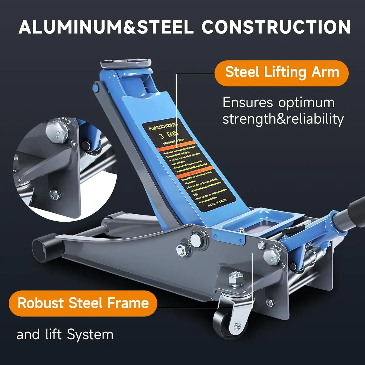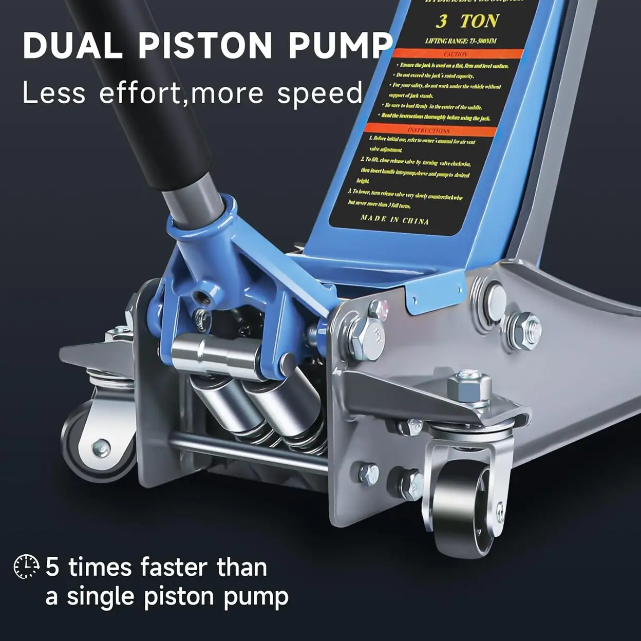 LARBANKE 3 Ton Car Jack with Dual Pistons Quick Lift Pump,6600 LBS Low Profile Carbon Steel Floor Jack,Lifting Range 2.87"-19.69",for Sport Utility Vehicle,Blue Trolley jack
