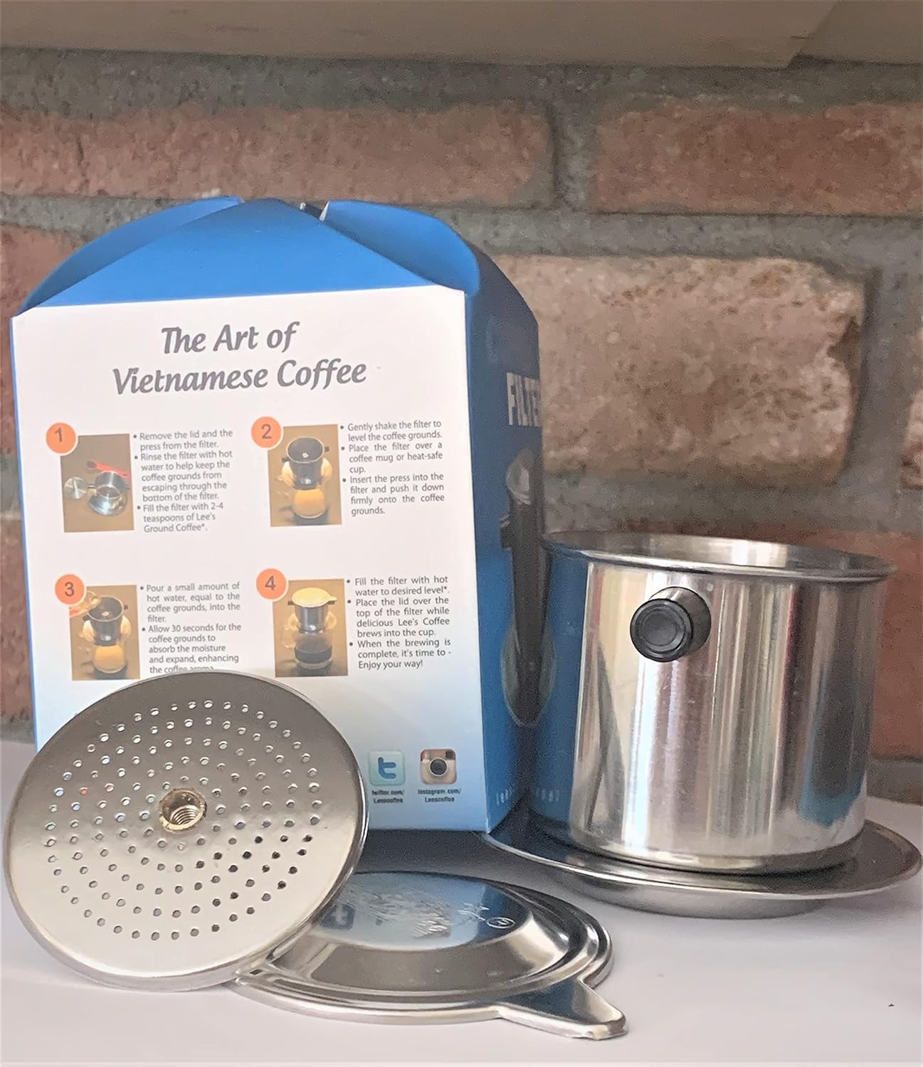 Lee's Coffee The best of Vietnamese Milk Coffee Combo Kits - Bo Ca Phe Phin Ket Hop Sua Dac Ngon Dam Dac Lee Coffee - Included Ground Buon Me Thuot Coffee with the Coffee Fillter and Sweetened Condens