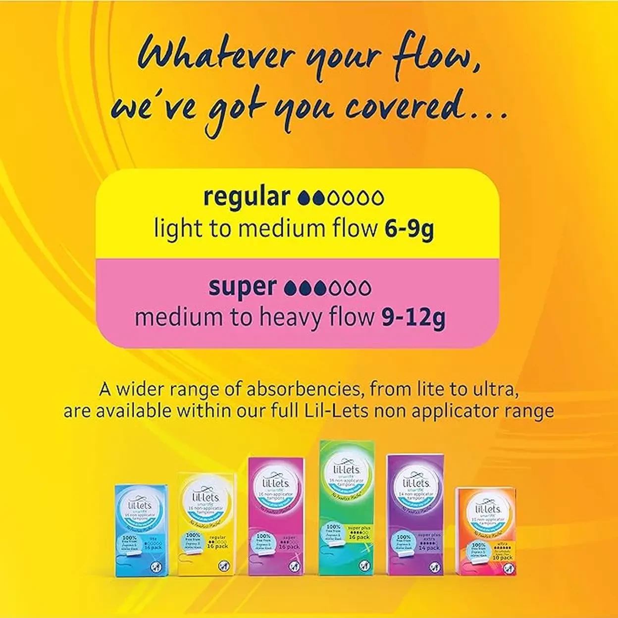 This product Lil-Lets SmartFit Cardboard Applicator Tampons Regular 12Pack features SmartFit™ design that expands all the way round for great comfort, fit and protection. Perfect for light to medium flow (6-9g) or 2 droplets, offering long-lasting protection from leaks for up to 8 hours. The super smooth cardboard applicator has anti-slip grips for a firm hold and a rounded tip for easy insertion, helping you get just the right placement for comfortable wear. Made with 100% plant-based absorbent viscose (made from trees), these tampons are free from fragrance and chlorine bleach, and are vegan friendly. The absorbent core is made from viscose, surface cover from non-woven fabric made of polyethylene and polyester, string from polyester, applicator from cardboard with waxed paper surface, and wrapper from paper laminated with polyethylene and a polypropylene tear strip.