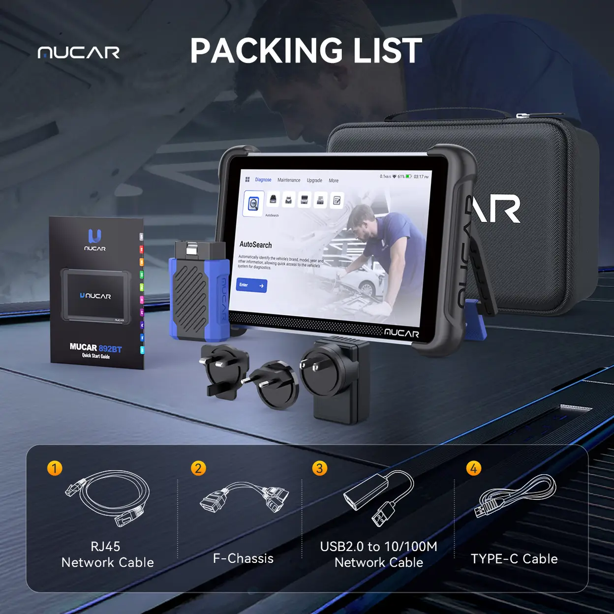 MUCAR 892BT Professional OBD2 Diagnostic Scanner with Lifetime Free Updates, ECU Coding, Bi-Directional Control, CAN-FD & DoIP, AI Intelligent Diagnostics, 8" Touchscreen Tablet with Magnetic VCI, Sup