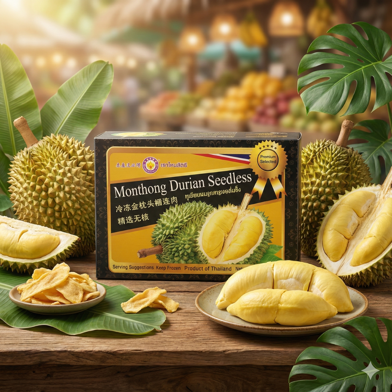 Introducing Thai Ao Chi Premium Frozen Monthong Seedless Durian Pulp (legal name: Frozen Durian Seedless Pulp), a high-quality treat that brings the authentic, rich flavour of Thailand’s renowned Monthong durian straight to your home. Crafted with 100% frozen seedless durian pulp, this premium product captures the essence of ripe durian, frozen at peak ripeness to lock in its natural aroma, creamy texture, and delicious taste. The smooth, custard-like flesh offers an indulgent experience, perfect for enjoying on its own as a luxurious snack or incorporating into a variety of desserts and smoothies. Ideal for durian lovers seeking a convenient and high-quality way to savor the unique taste of Thai durian, this frozen pulp eliminates the hassle of peeling and seeding, allowing you to enjoy the goodness of durian anytime, anywhere. With its authentic Thai origin and commitment to quality, Thai Ao Chi Premium Frozen Monthong Seedless Durian Pulp is the ultimate choice for anyone craving the iconic flavour of fresh durian, preserved to perfection.