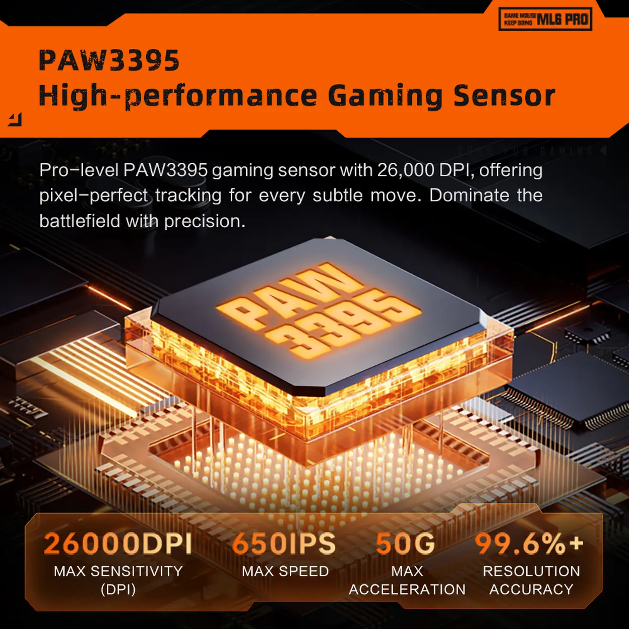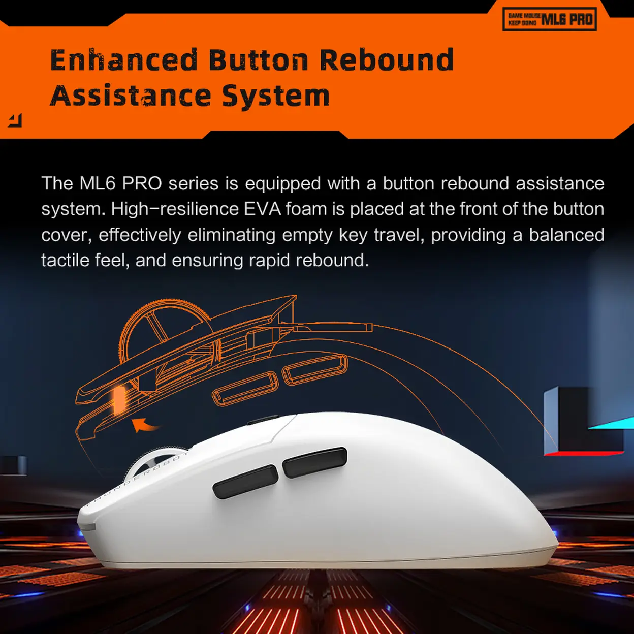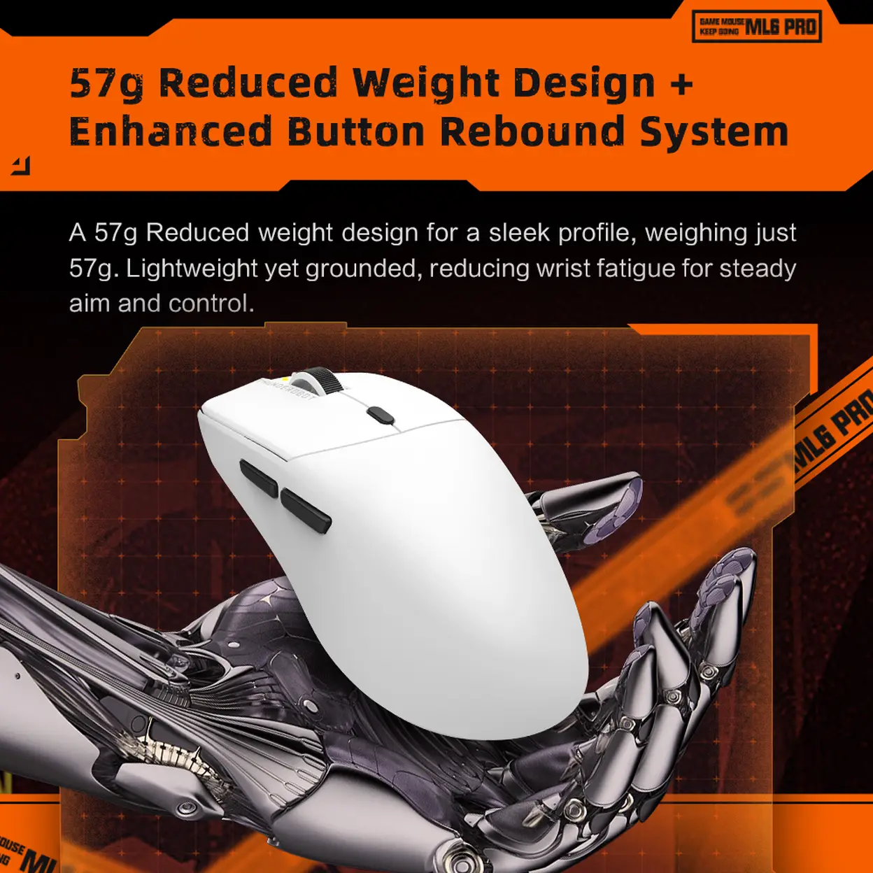 Thunderobot ML6Pro Tri Mode Wireless Gaming Mouse PAW3395 Lightweight 26000 DPI RGB Backlight Ergonomic Mice Suitable for FPS,White