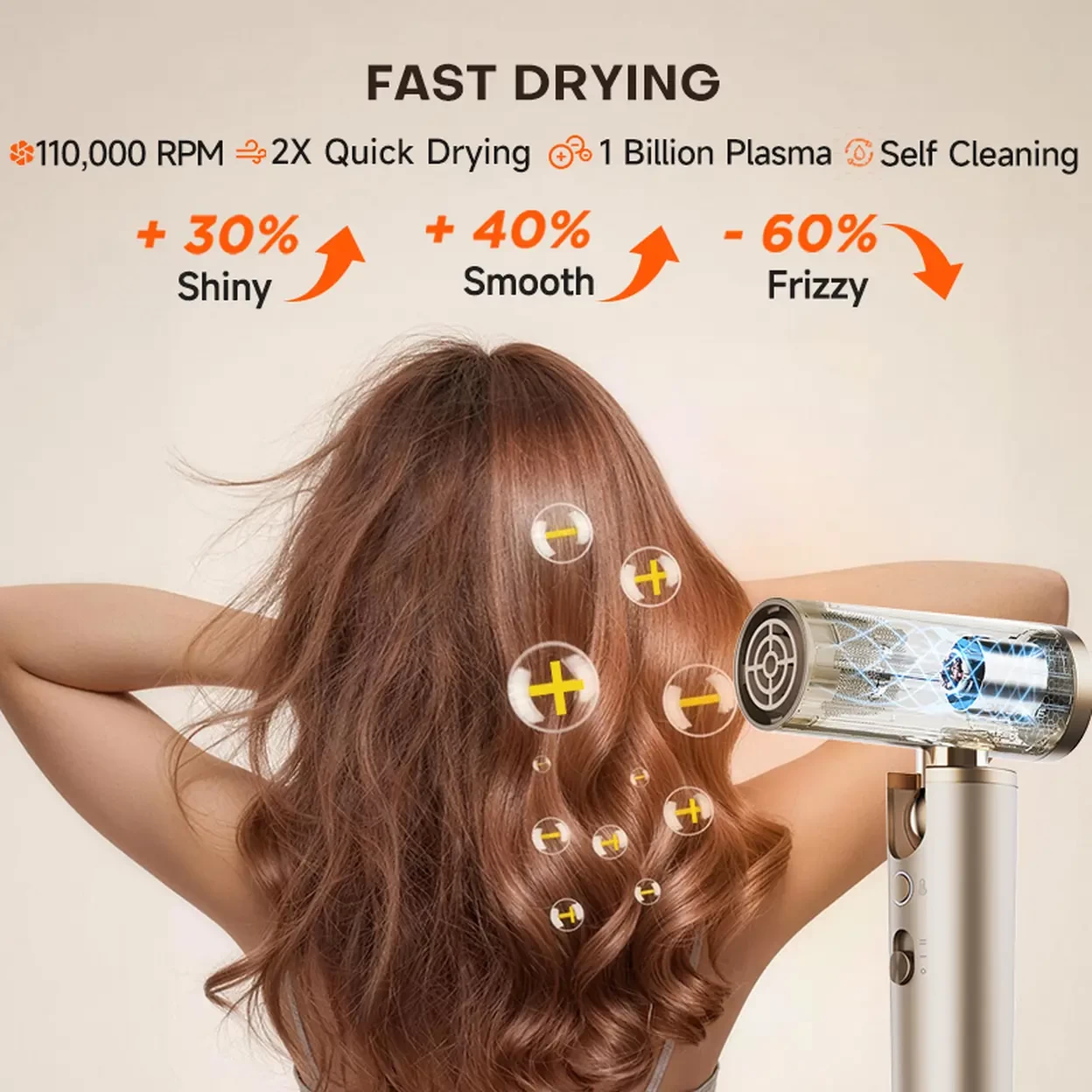• 1 Billion Ions Plasma Care: Dries and styles fast while emitting ions to help tame frizz, lock in moisture, and enhance your hair's natural shine and health.