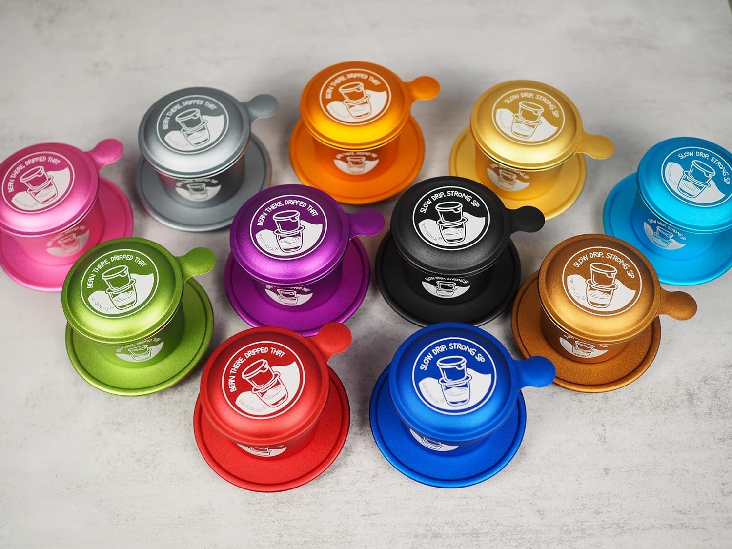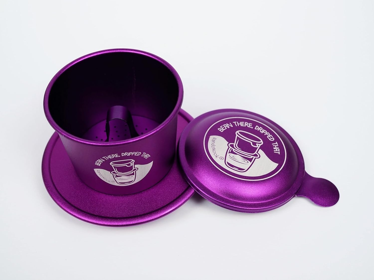 Vietnamese Coffee Filter Phin, Anodized Aluminum, 170ml Single Serve, Durable, Reusable (Purple - Bean There Dripped That)