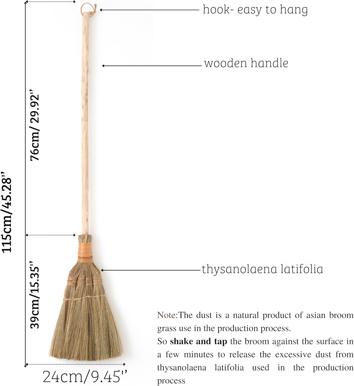Vietnamese Straw Soft Broom for Cleaning with Long Handle Broom- Broom Decorative 9.45'' Width, 45.28" Length