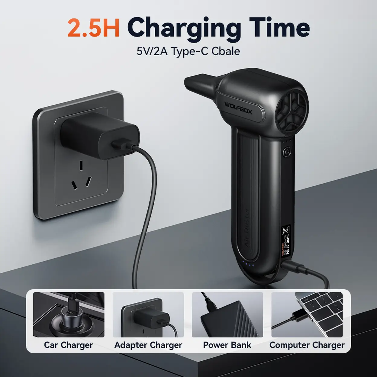 WOLFBOX DF100(MF100-BLACK) Wireless Electric Air Duster Air Blower-150000RPM Portable Fan Brushless Motor for Car/Home/Outdoor