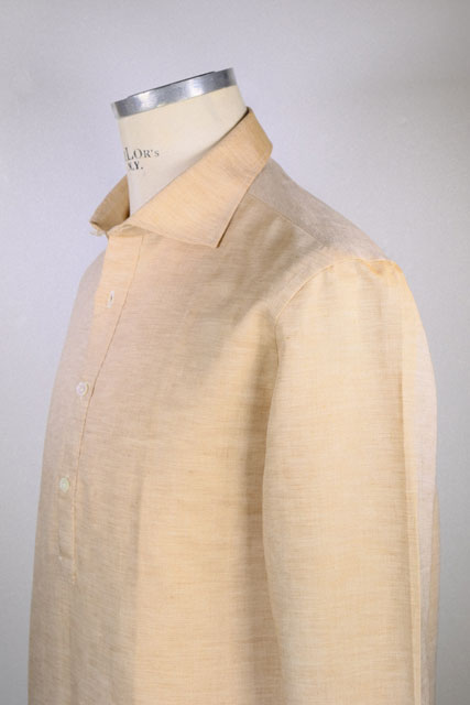 Each of our garments is made with great care, from the cut of the shirt and the fabric of the collar done by hand, to the preparation before sewing it, then moving on to hand-stitching, embroidery of the buttonholes followed by hand.  Cut strictly with scissors and assembled with simply linear machines.  This dexterity favors softness in the seams, the sleeves inserted and sewn with the bust closed in which the softness is harmoniously dosed and distributed to give more uprightness.