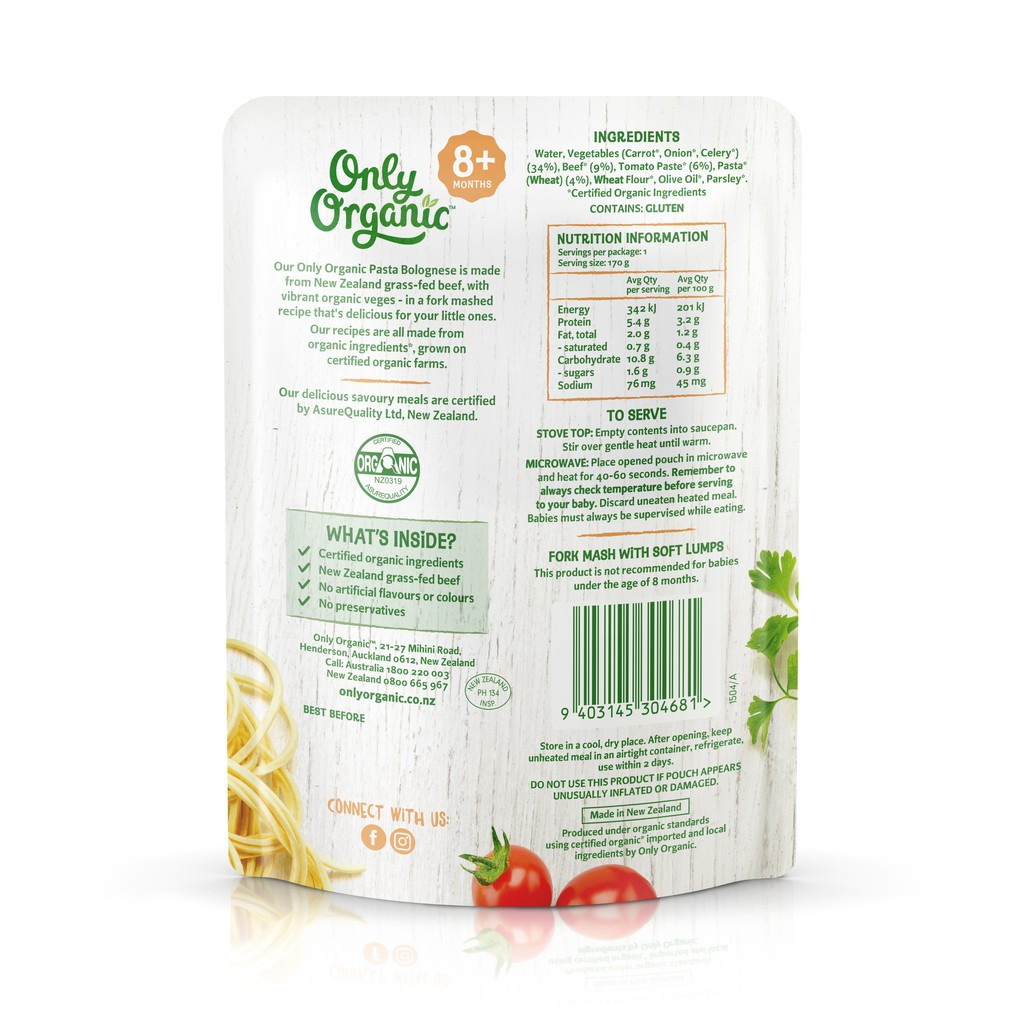 Only Organic Pasta Bolognese 170g- From 8 Months