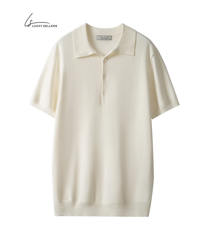 100% Cotton Thin Short Sleeve Button Lapel Polo Shirt Knitted Business Casual Slim Fit Men's T-shirt