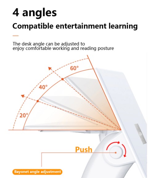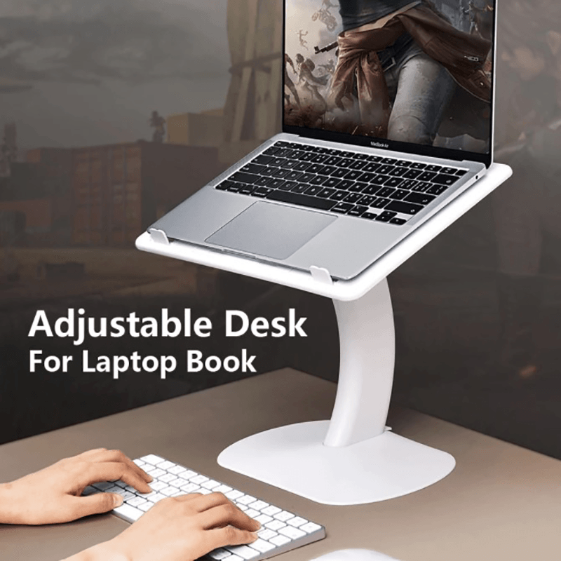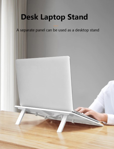 Adjustable Desk For Working And Reading✔️Ergonomic elevation angle protects the user's cervical spine and eye health.✔️Silicones provide the best protection for your equipment,✔️Compatible for 7-15 inch laptop.✔️Suitable for different scenariosThe best choice for daily work and business trip. Features• User-friendly concept, easily adjust to comfortable angle• Suitable for different scenarios, portable for daily work and business trip• Silicone pad for providing the best protection for device• Stable and durable Parameter • Color:White • Material:Plastic+Silicone • Applicable models:7-15 inch laptop