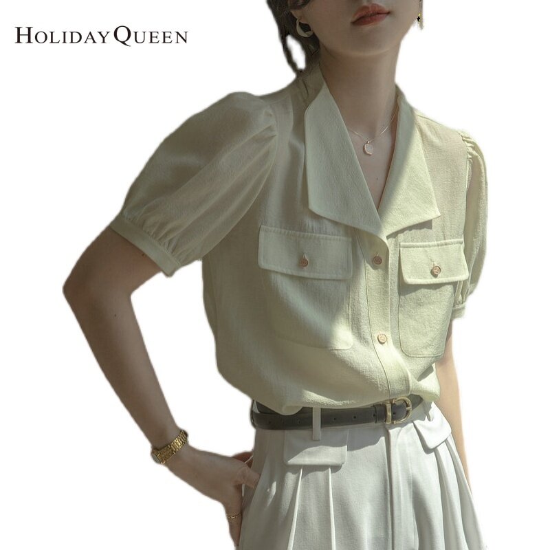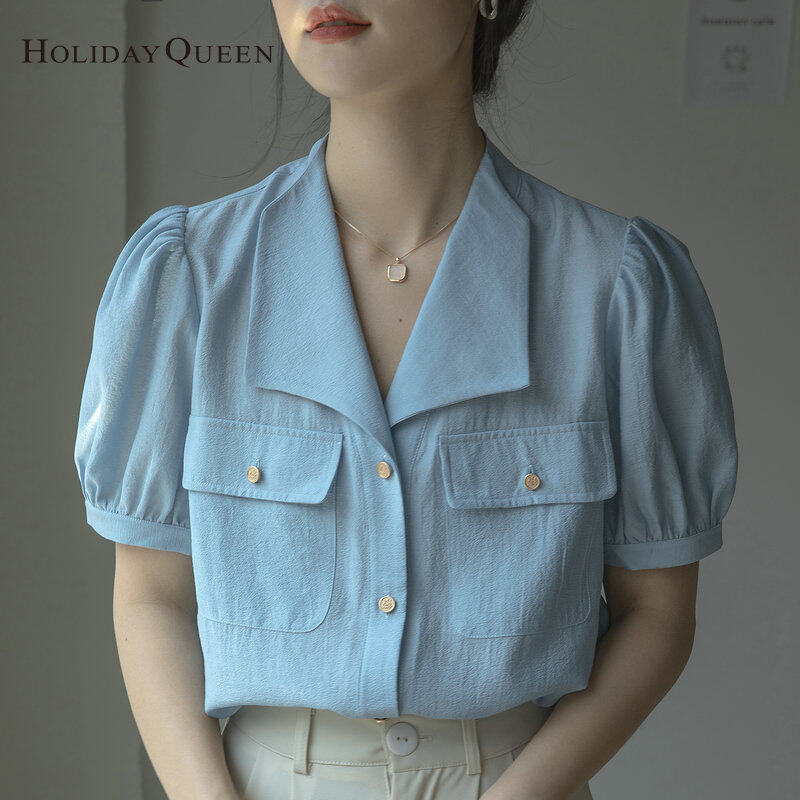 HolidayQueen Ladies Puff Sleeve Shirt Summer New Fashion French High-End Blue Top S M L XL 2XL Free Shipping HQ1302