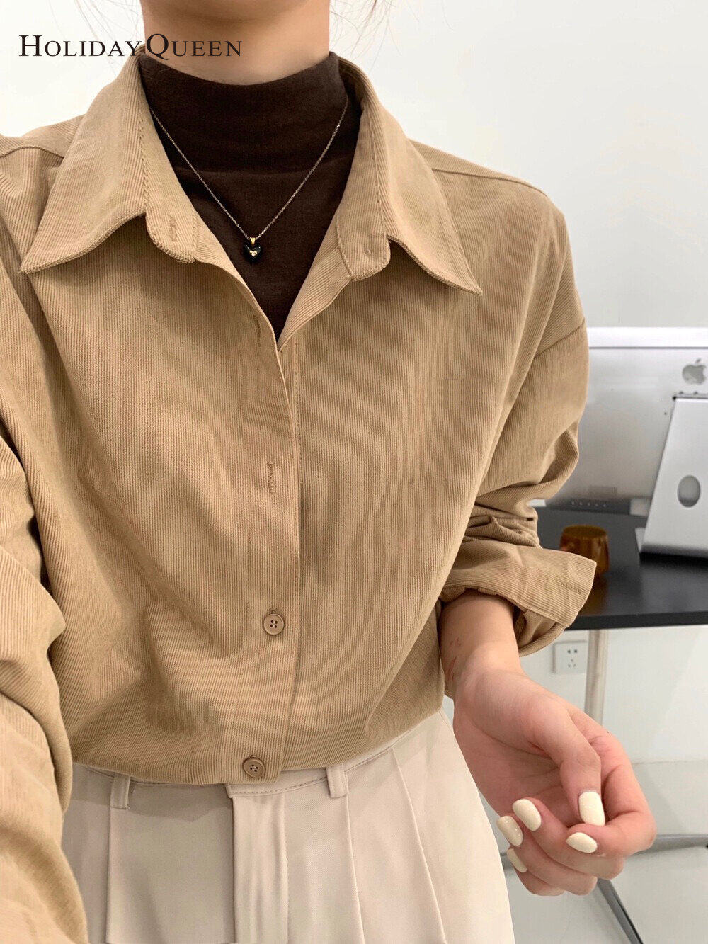 HolidayQueen Korean Edition Fall/Winter New Corduroy Thick Long-sleeved Shirt Stacked Shirt Tops Free Shipping HQ1854
