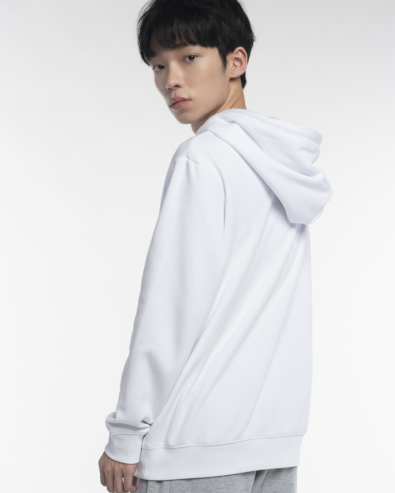 Yishion Men Solid Coloured Long Sleeve Hoodie with Kangaroo Pockets and November Slogan (White)