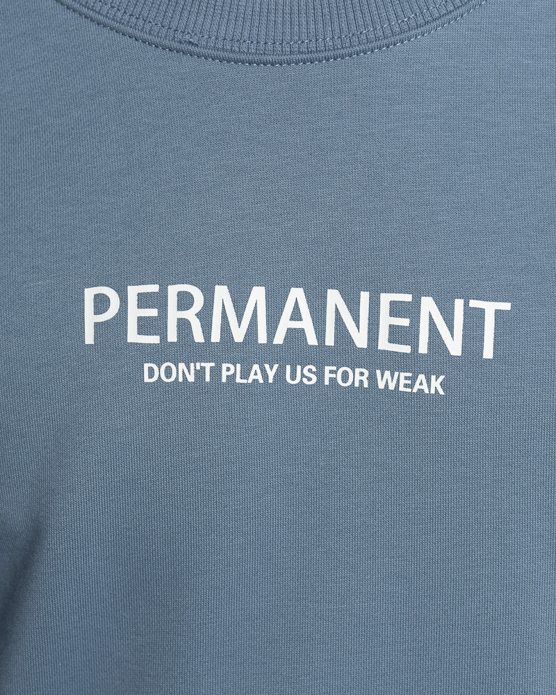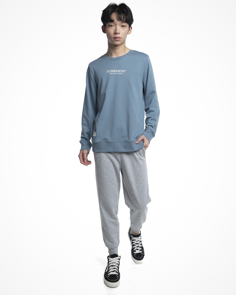 Yishion Men Solid Coloured Long Sleeve Sweatshirt with Permanent Slogan (Stone Blue)