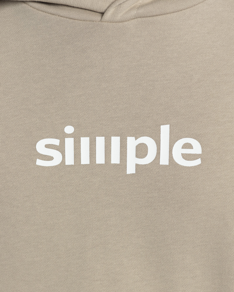 Regular Solid Colour Long Sleeve Pullover Hoodie with Kangaroo Pockets. Comes with "SIMPLE" Slogan on the front. Made of cotton.