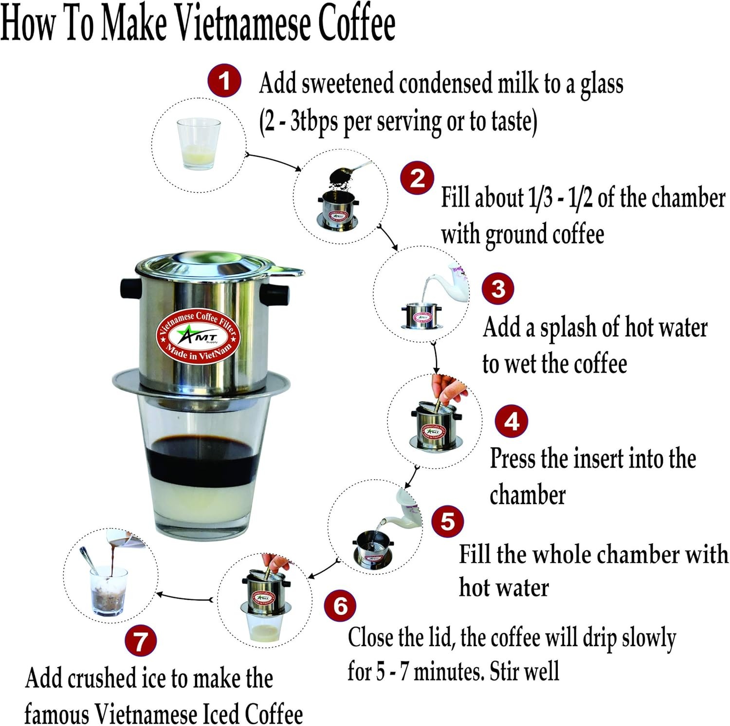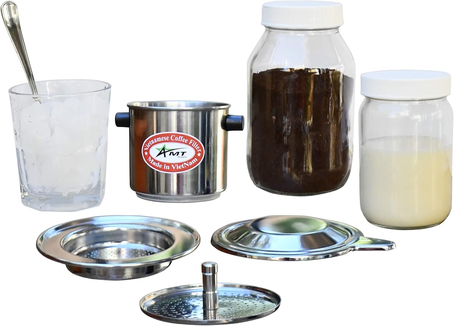 AMT 13 oz Coffee Maker - Vietnamese Phin Filter with Cork, 2-3 Servings, Screw Down Coffee Dripper for Home Office