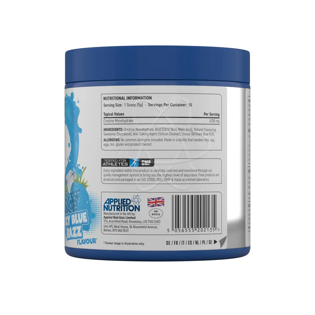 Applied Nutrition Creatine Monohydrate Strength Strength Support Powder Icy Blue Raspberry Flavour - 250g