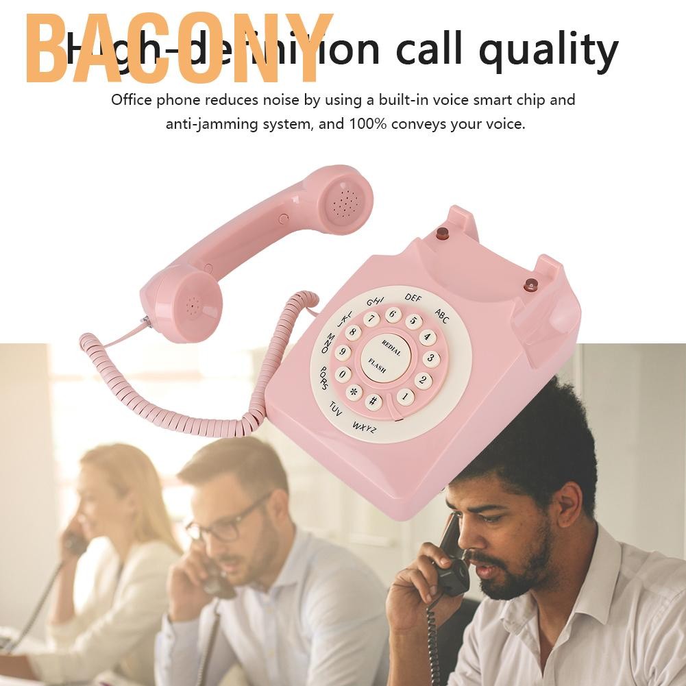 Bacony 【Xcoco】Vintage Telephone High Definition Call Quality Wired for Home Office Pink